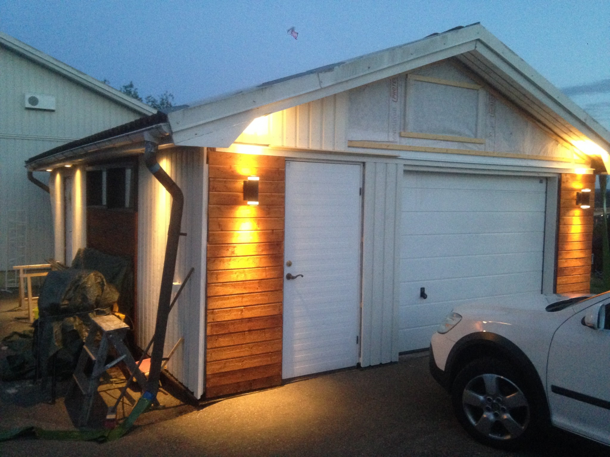 Har jobbat i slowmotion hemmavid, men idag knackade jag ner sista delarna av vårat gamla 70kvm förråd så imorgon ska tigersågen få slakta ner lite takstolar som ligger på backen!