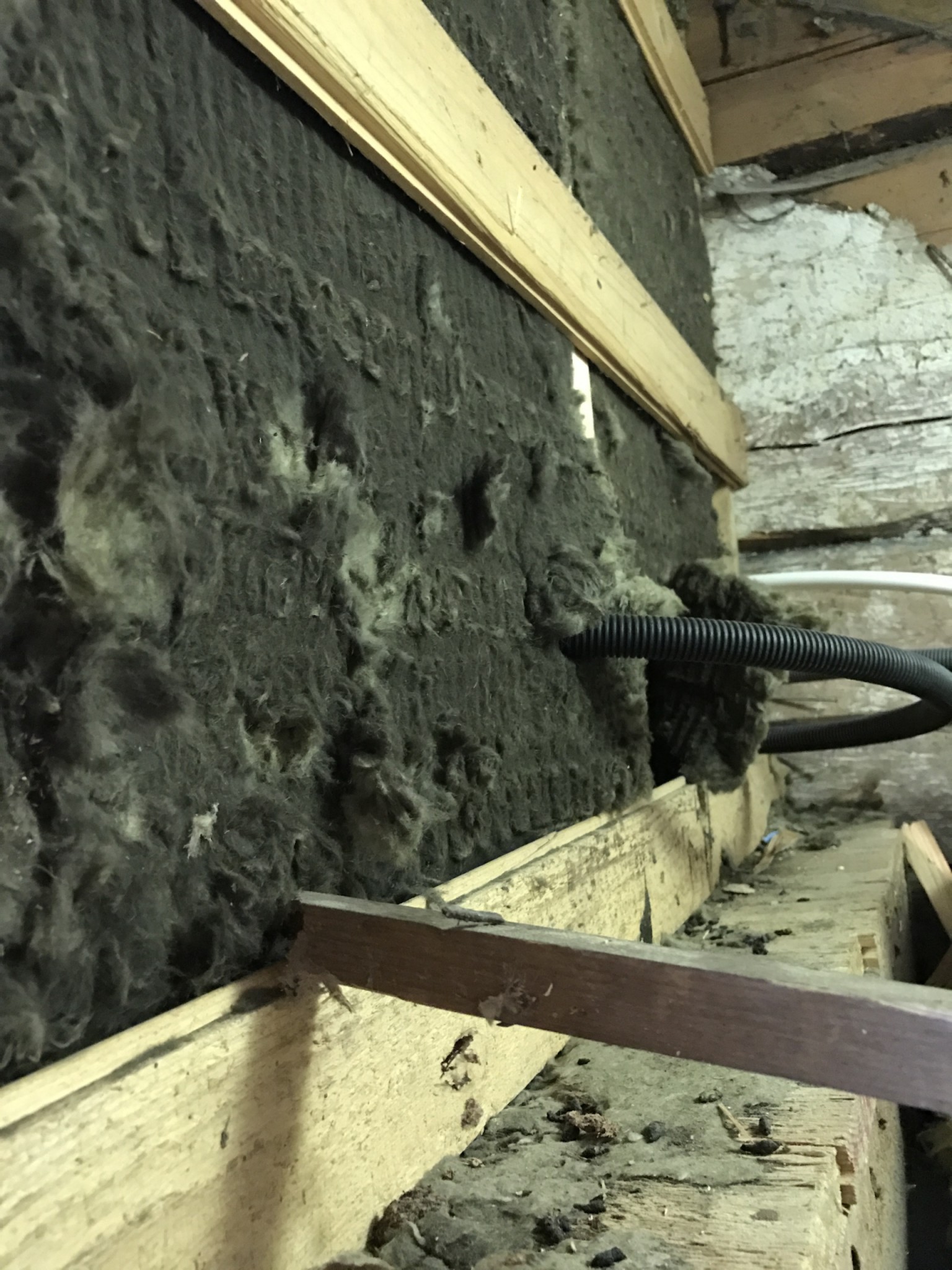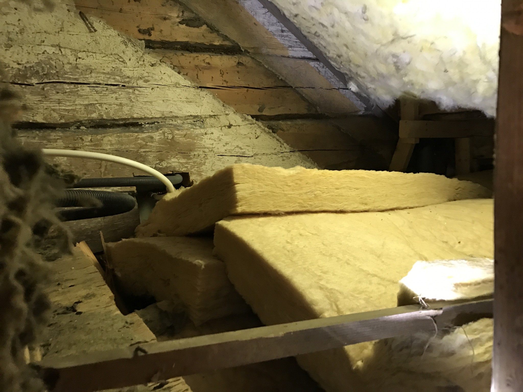 Barn och fru borta så jag har haft det tveksamma nöjet att tömma ett slutet utrymme under trappan på gammal mineralull (luktade inte bra vid fuktigt väder)