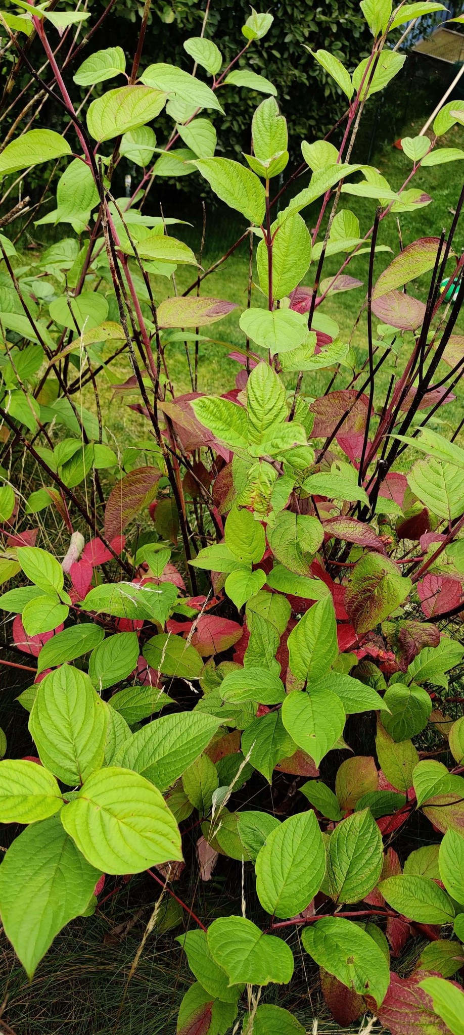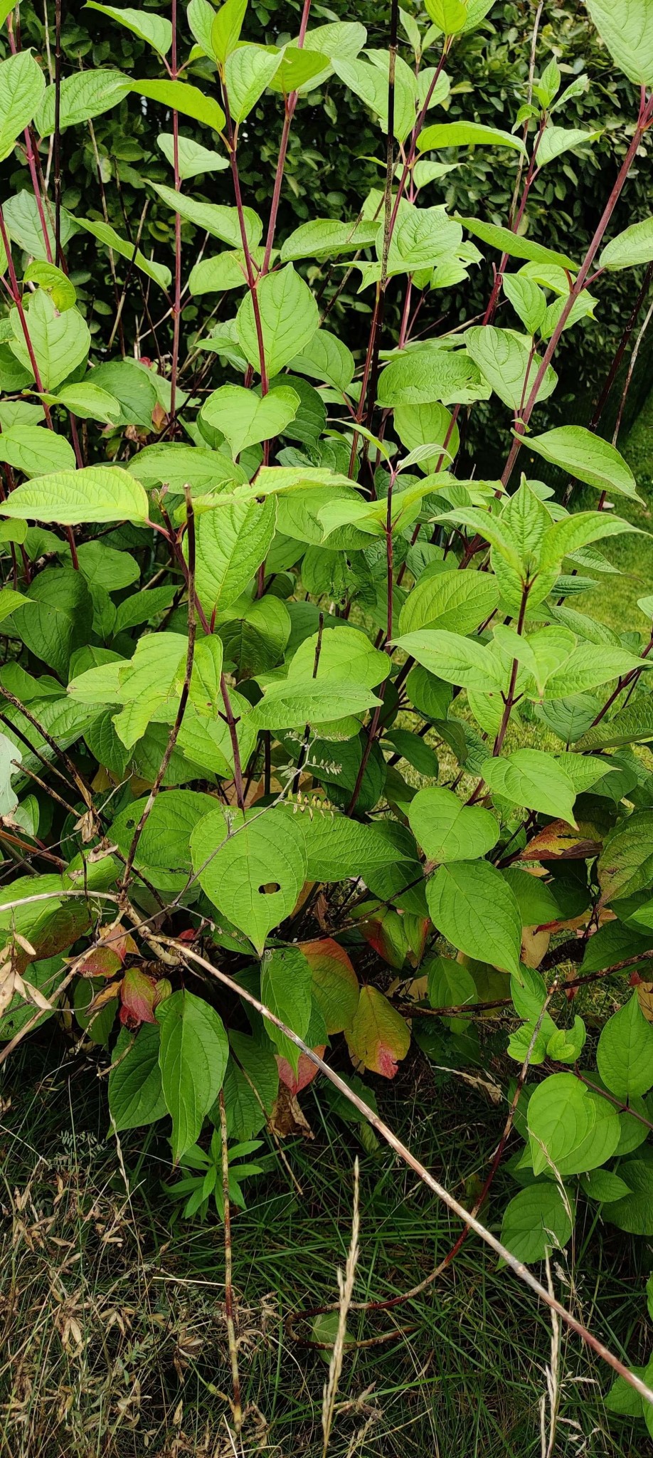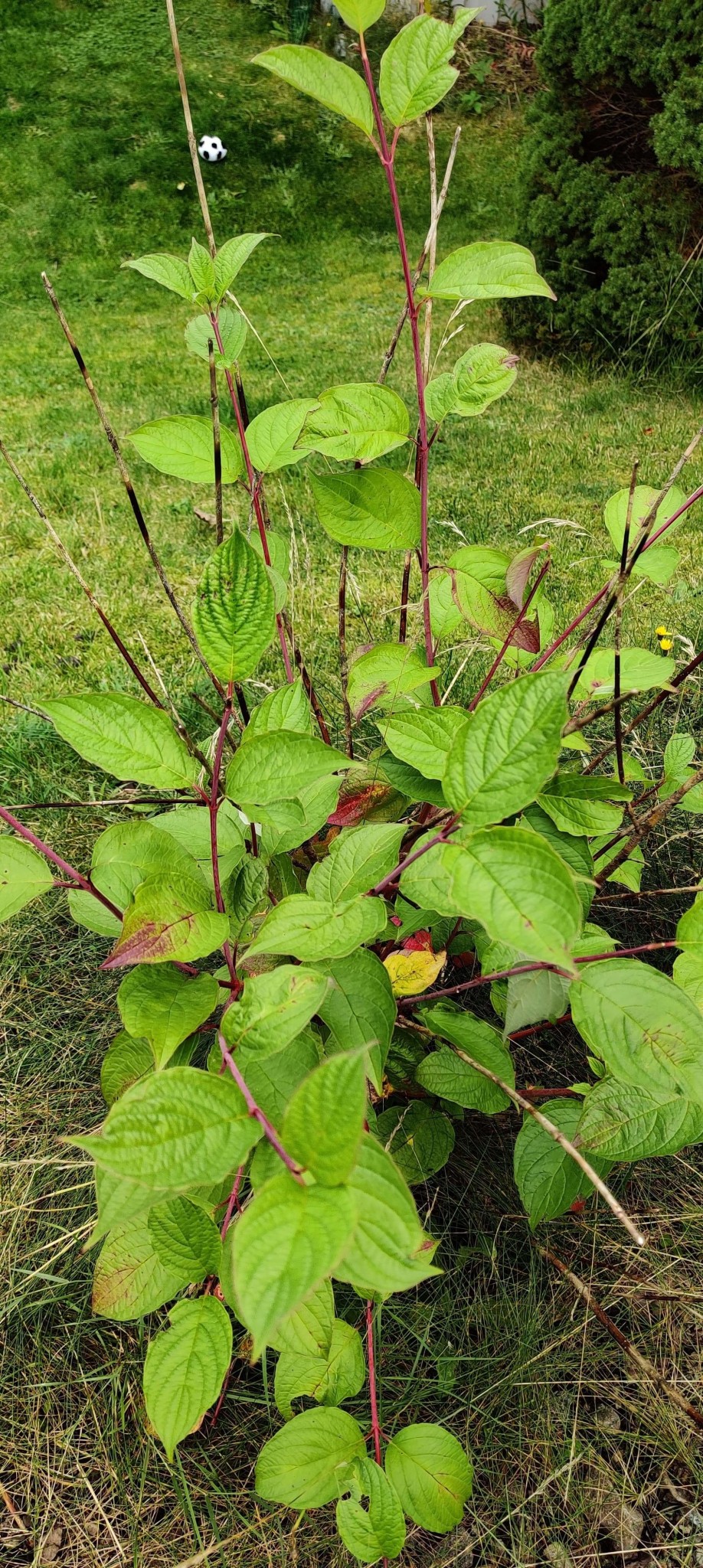 Troligen är det en korallkornell. I princip mycket lättskötta med de är ingen långvarig buske. I naturen tar de över öppen mark snabbt som pionjärart. Tyvärr har korallkornellen fått svampangrepp på senare år. Det ger döda grenar och en ful buske. Eventuellt har ditt nyligen nedskurna exemplar det.