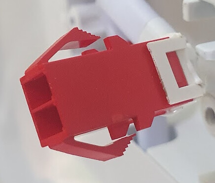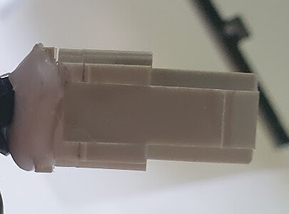 Denna kontakt ansluter en led-lampa (230 V) i locket på en frysbox till frysens el-matning. Någon som vet vad den heter och/eller var man kan få tag på den?