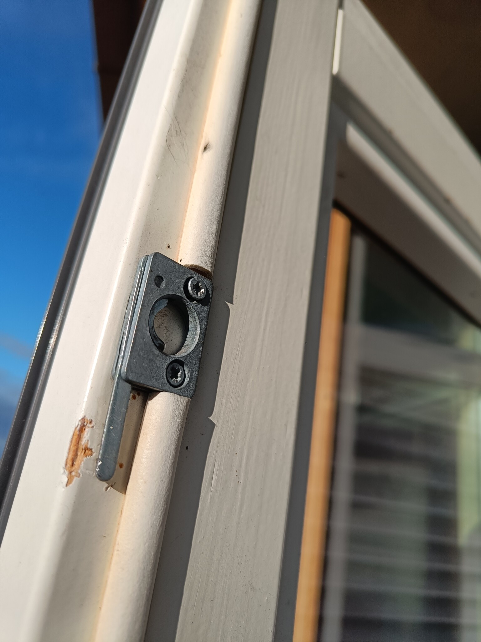 Jag har en balkongdörr som är öppningsbar så att man kan komma åt att rengöra inifrån samt även persiennerna. Den hålls ihop med en slags spak som låser ihop sig med en slags ring med ett spår, som på så sätt låser ihop fönstret när man inte ska öppna det.