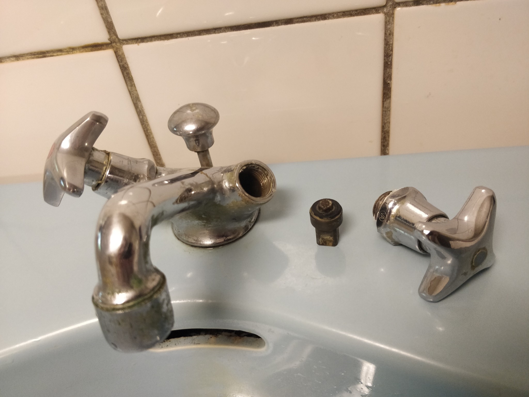Nyligen inflyttad i ett äldre hus och fick idag en trevlig överraskning: i källaren finns ventiler som klipper vattnet till handfat, tvättmasking och dusch. Öppnar jag ventilen för kallvatten (som är det som också går till tvättmaskinen), så forsar det vatten i kranen i handfatet... Jag har naturligtvis försökt att skruva på kranen, men det gör ingen större skillnad. Några idéer om vad som kan vara fel?