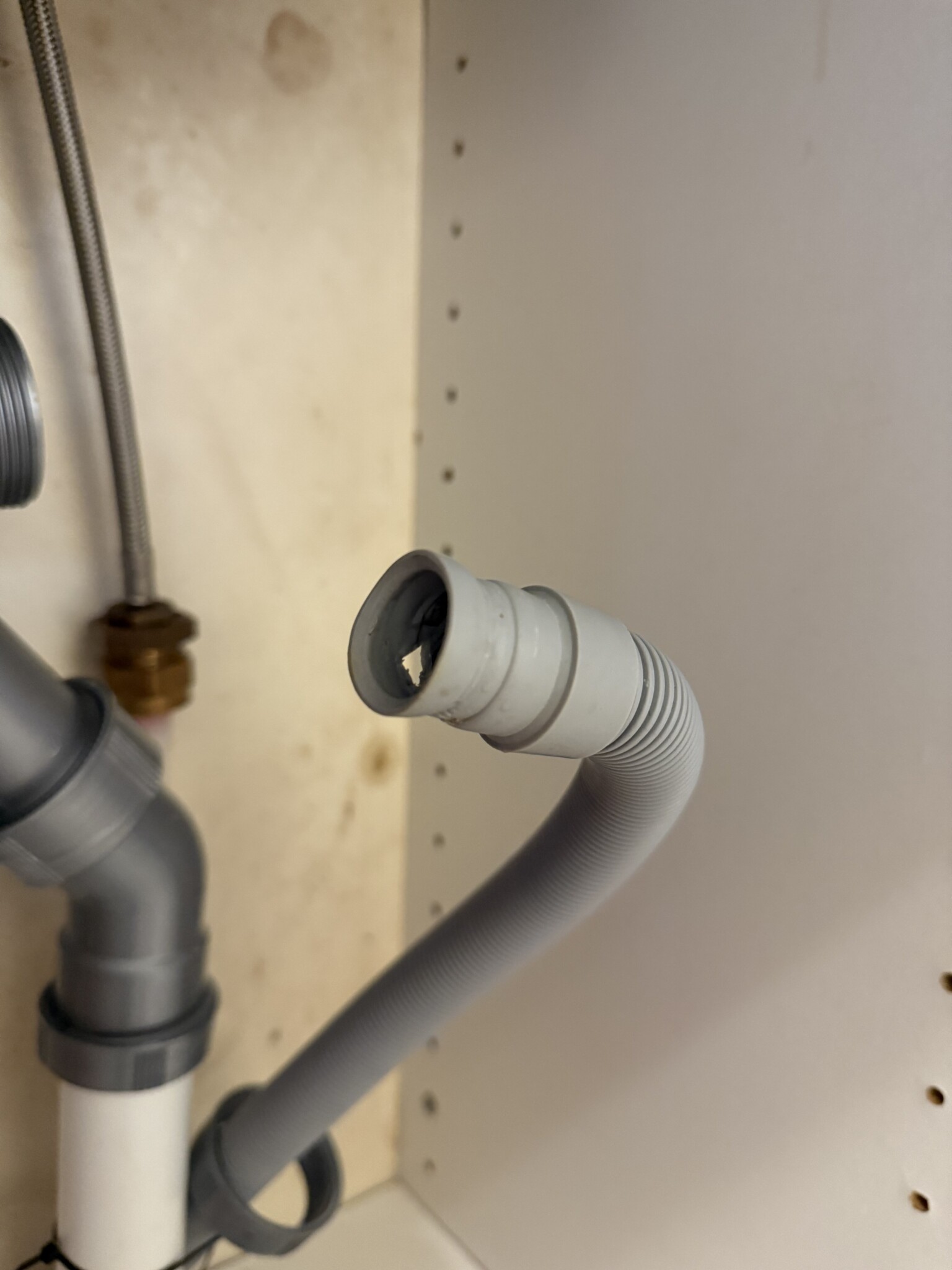 Upptäckte ett droppande läckage och när jag skruvade av denna för att felsöka (misstänker att förra husägaren dragit åt slangklämman för hårt så det gick sönder) så såg jag att det ar hålet som var boven.