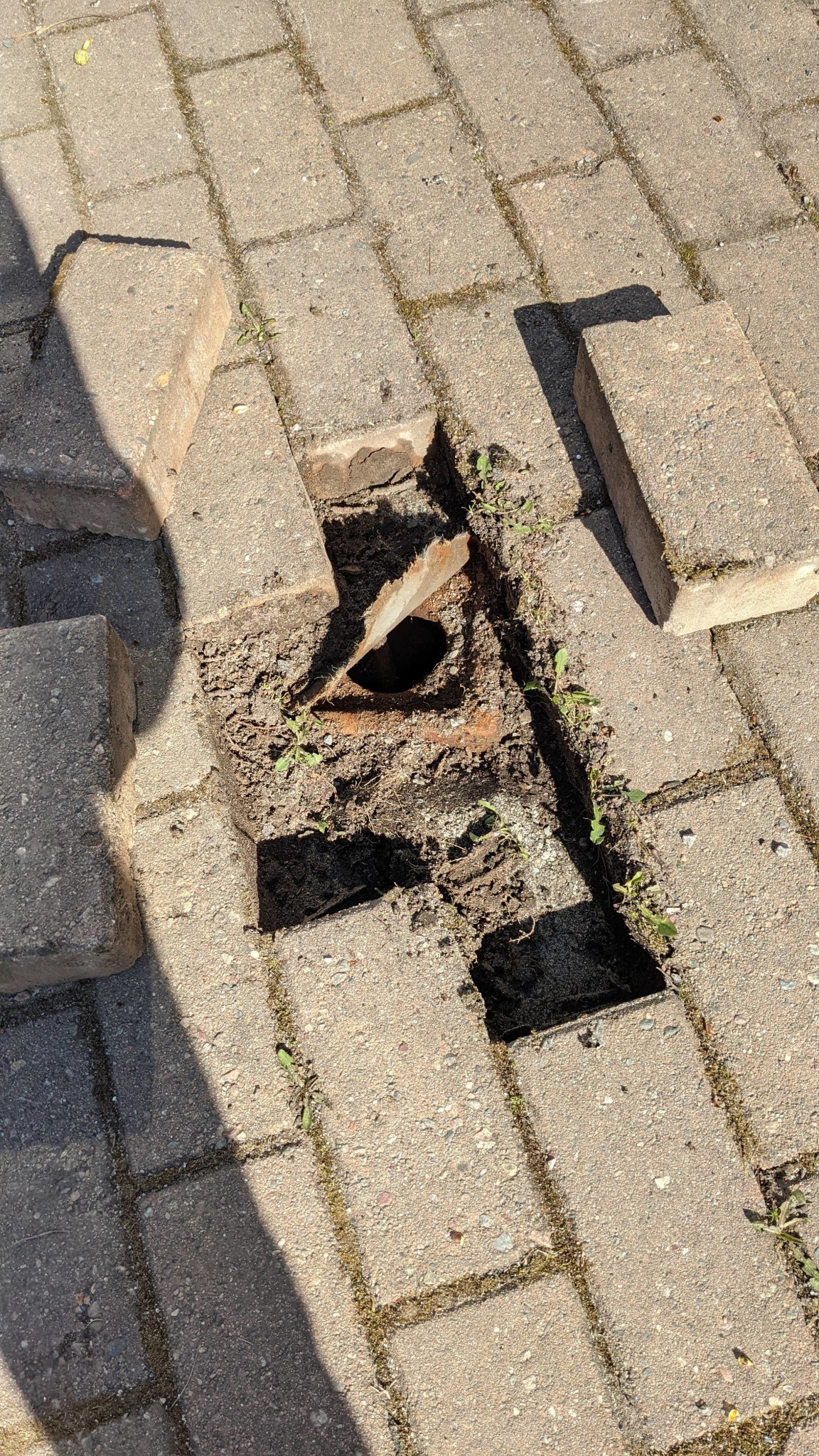 Nu under våren har vi fått en buckla på vår gångväg, nära tomgränsen mot gatan. När jag lyfte på markstenen så hittar jag det ni ser på bilderna. en brunn (eller ventil?) utan lock och bara lite markduk över. Är det någon som vet vad det kan vara? Min gissning är anslutning/ventil för stadsgas som numera inte finns längre i området, men hur kan man veta säkert? Hur går man till väga för att ta bort den?