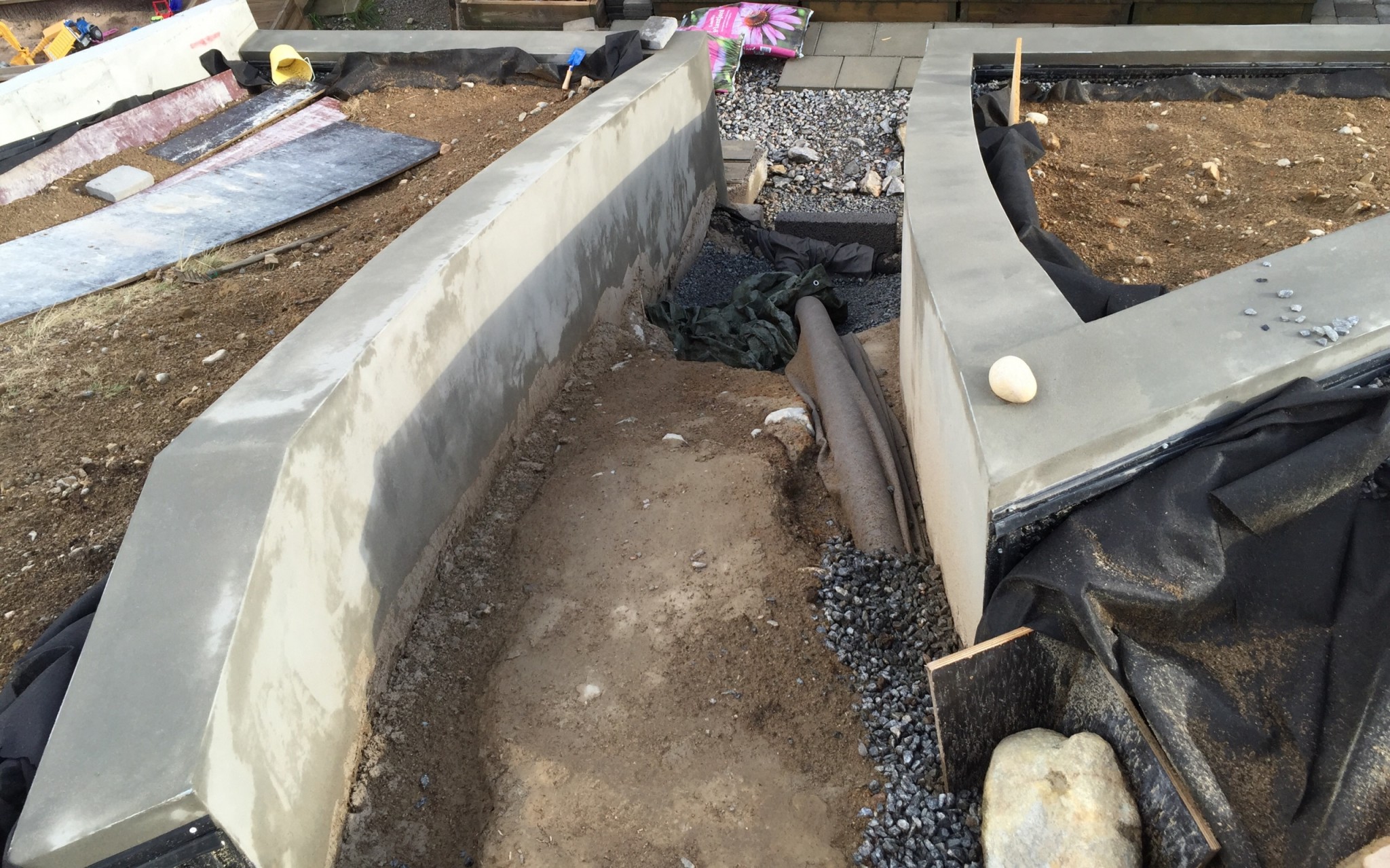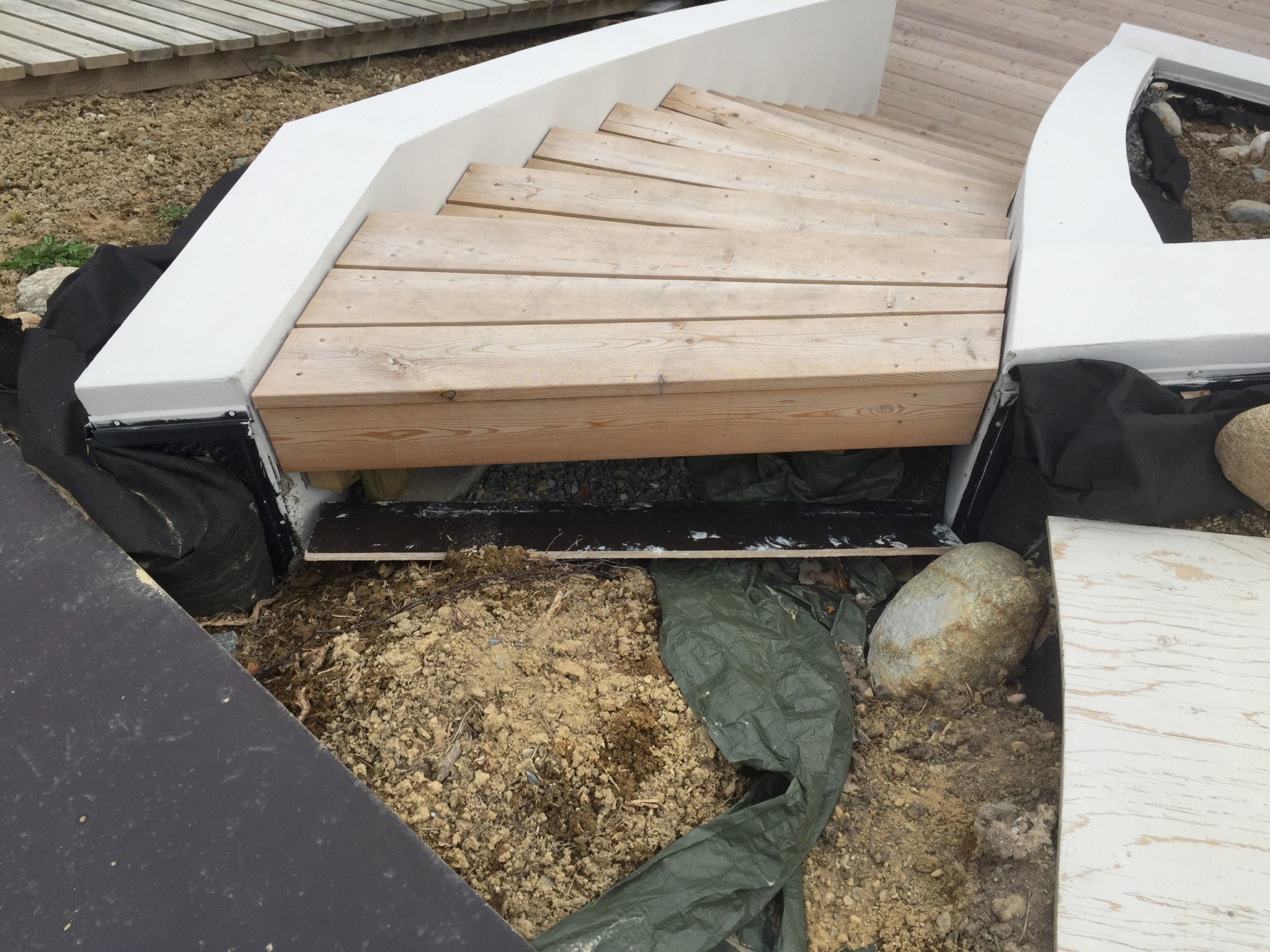 Om jag ska bygga en stödmur i marknivå, med en trappa i mitten av trä som går upp till nästa stödmur (trappan har också murar på sidorna för att jorden inte ska rasa ned i trappen). Vad sätter jag för "stopp" under trappan så att jag kan lägga en gång med marksten direkt efter trappsteget uppe i slänten?