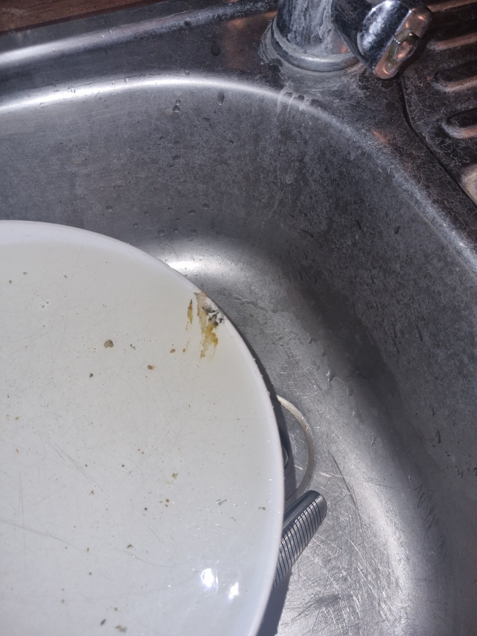 Jag har haft tallriken i vasken sen torsdag och när jag kom hem i söndags så såg jag detta. Kan det vara mögel? Jag har äldre disk i vasken som är från förra måndagen under denna tallrik. Vad ska jag göra? Allt i vasken är porslin tallrikar eller metal bestick. Känner mig jätteorolig för jag kan bara diska för hand. Det känns konstigt också att det skulle komma mögel efter några dagar då jag har haft disk i vasken längre än en vecka utan problem...tacksam för svar!