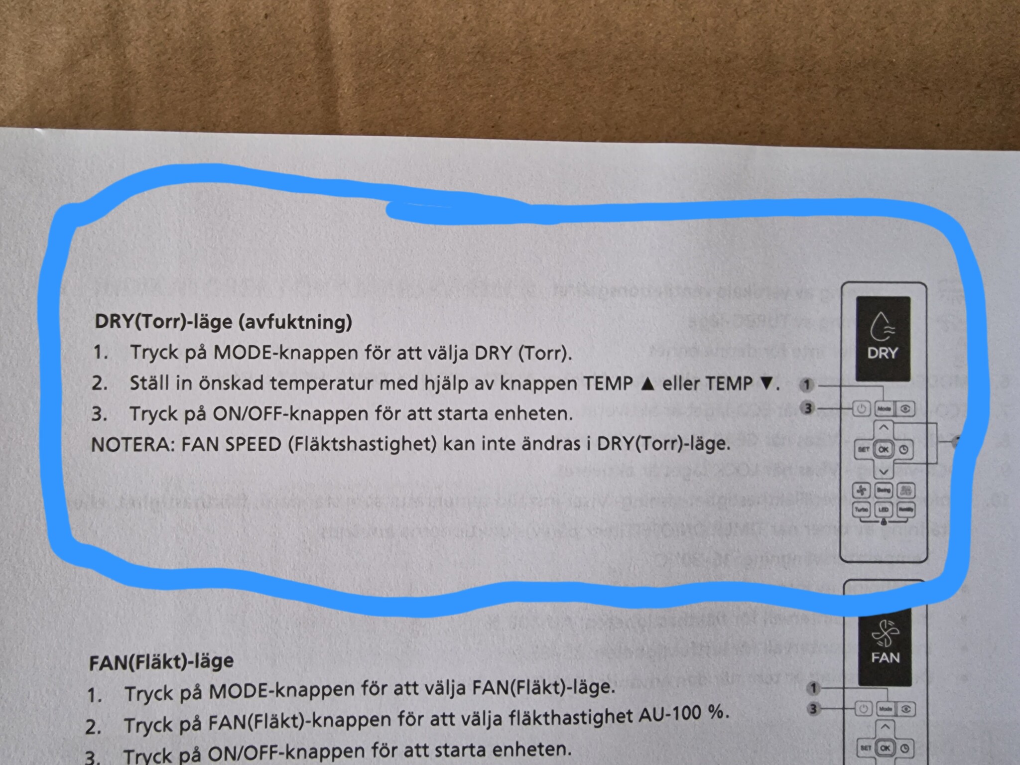 Skulle gissa på fel i manualen. Lär bli svårt att få avfuktning och värme på samma gång från pumpen.