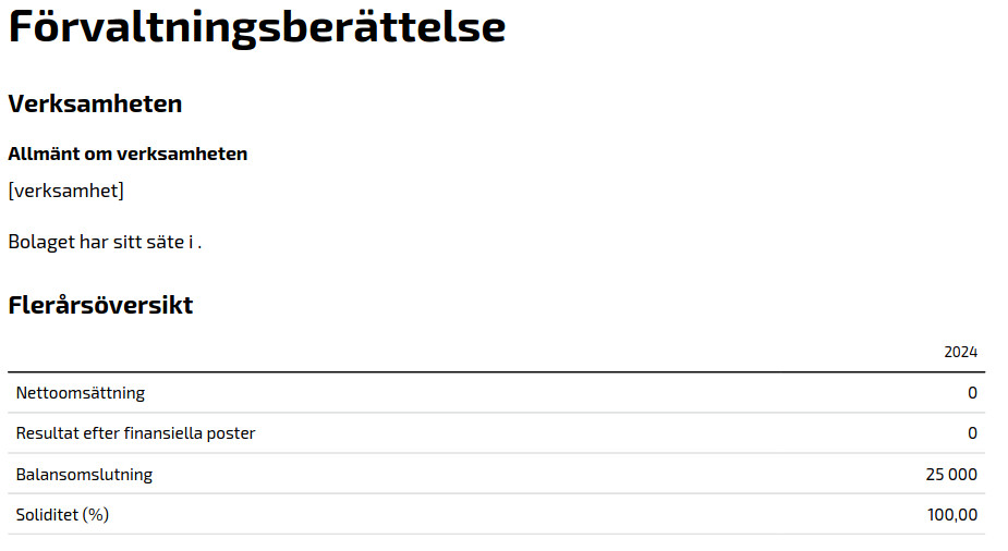 Sen finns det ett antal andra fel i årsredovisningen, men OK, givet att det inte skett några affärstransaktioner alls under 2024 så kanske det inte är hela världen. Fast även nystartade/inaktiva bolag har normalt en del småkostnader. Ett bankkonto är t.ex. inte gratis.