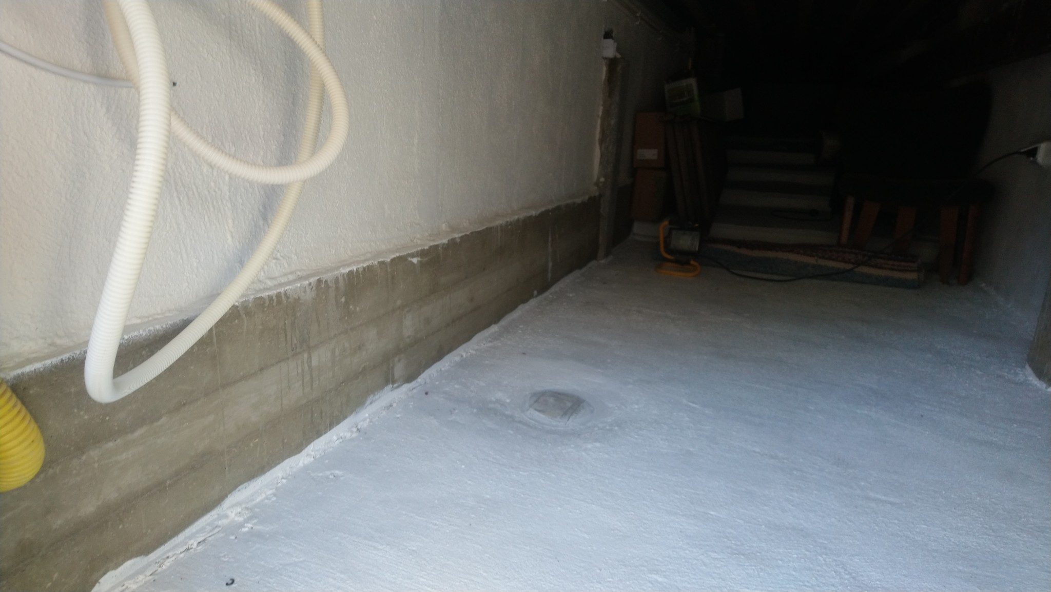 På insidan är det en liten källare/krypgrund. På den här bilden så ser ni en betongklack som då kommer vara under marknivå.