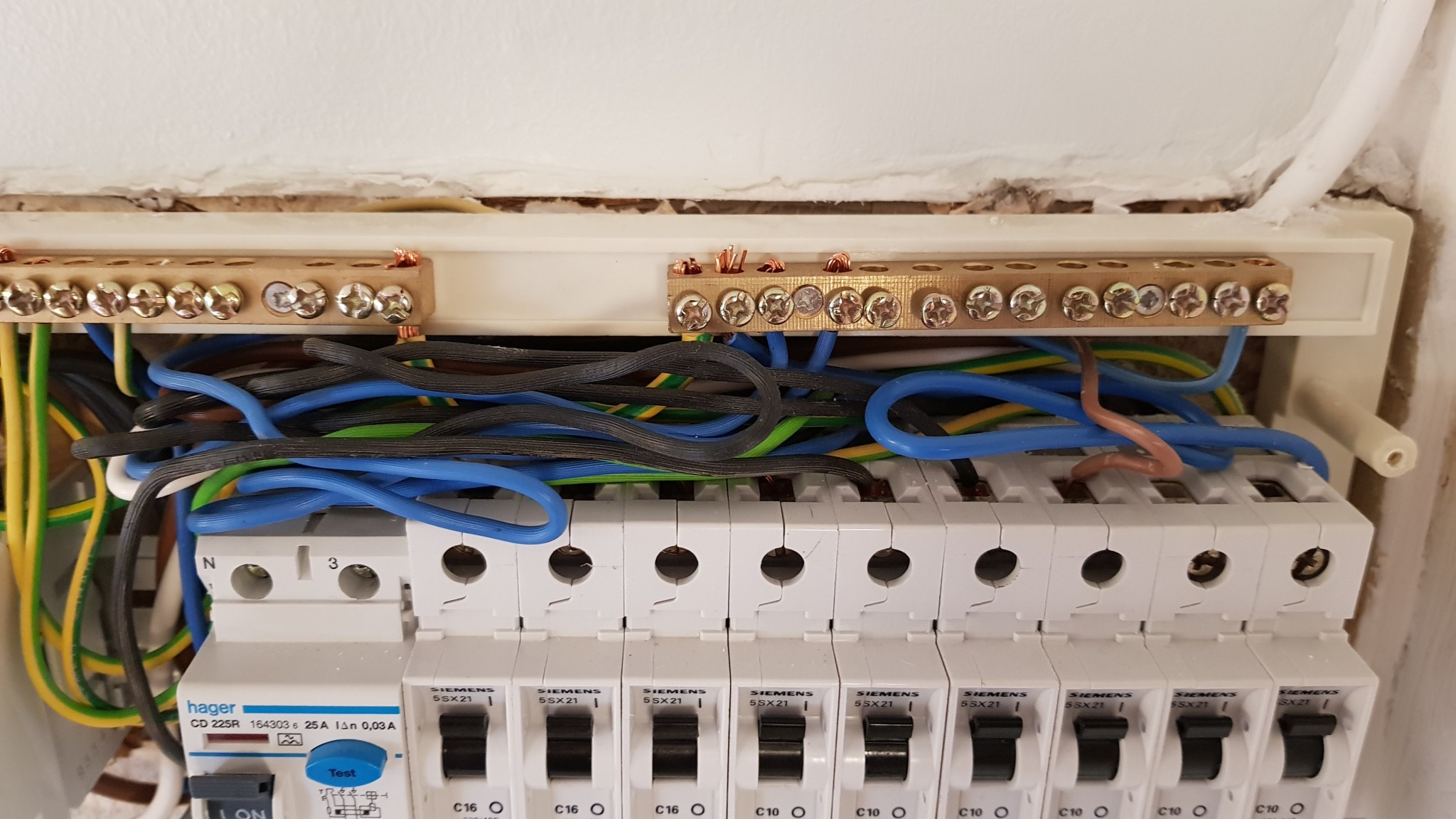 Jag hade bytt allt (gillar att det är enhetligt), monterat fyrpolig JFB och jordat alla uttag. Givetvis JFB med nolla till vänster och fasskena.