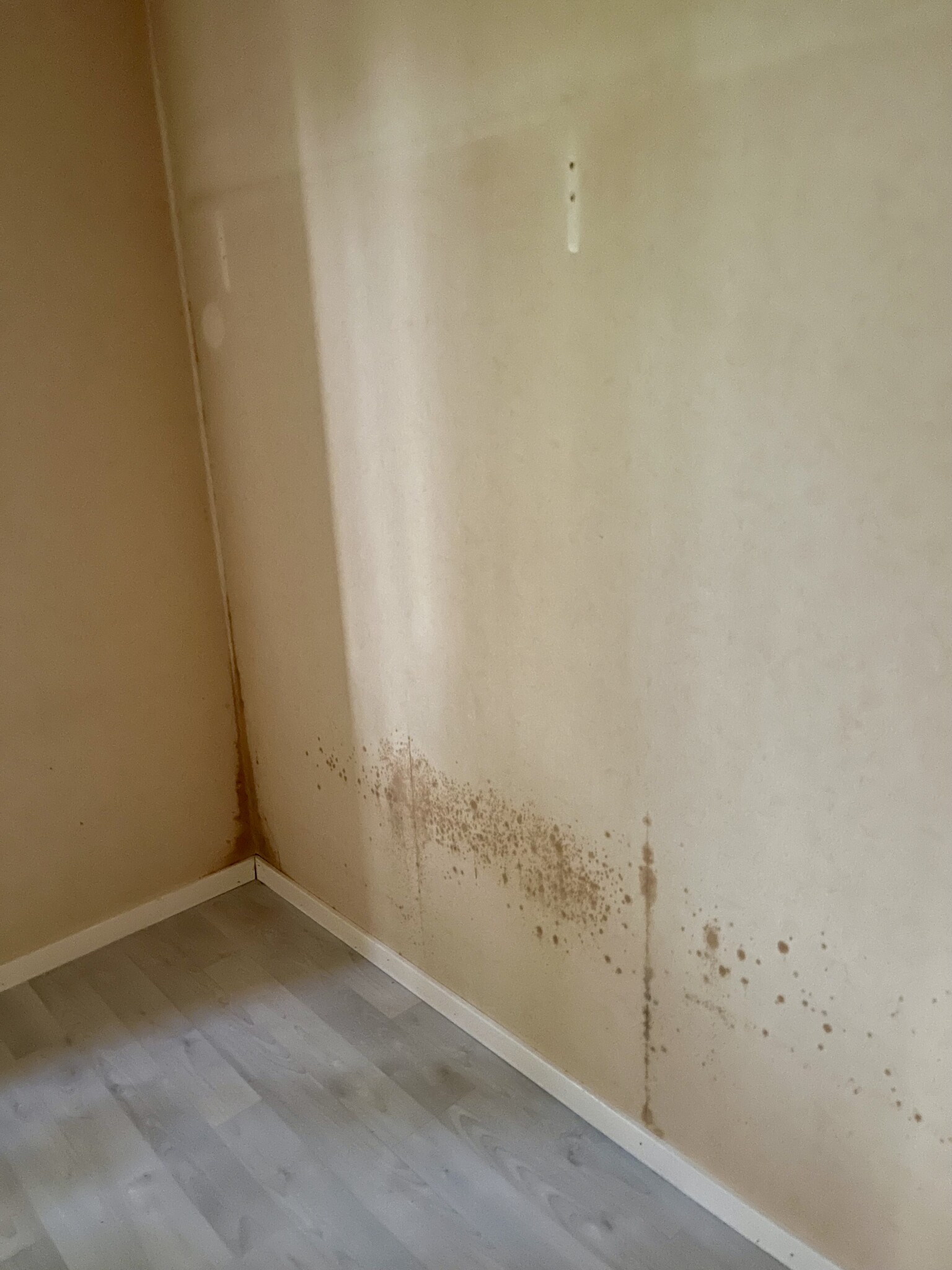 Vi har precis köpt landställe och upptäckte dessa två fläckar på ställen som vid visning var täckta av möbler. Vad tror ni det är? Mögel / fukt?