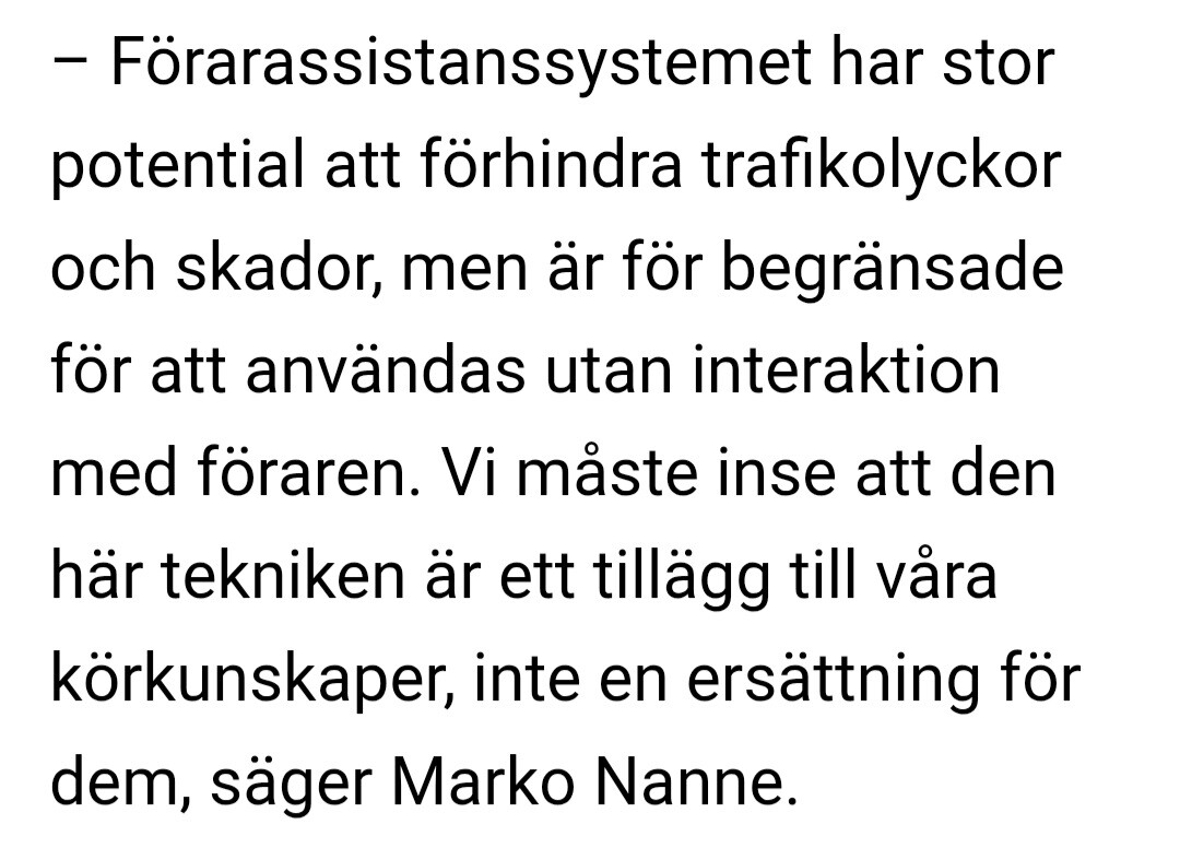 Samma som jag noterat ett flertal gånger, systemen ska användas på rätt sätt.😉 Så gör man det "har det stor potential att förhindra trafikolyckor och skador". Men det kanske var den "goda nyheten".