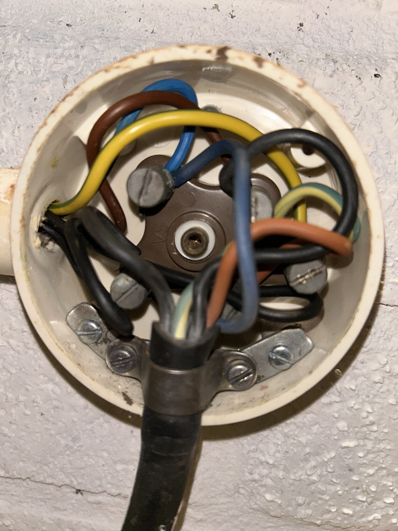 Har svårt att se ledningarna i dosan. Använd fotoblixt eller inbyggda lampan när du tar bilder så blir det säkert bättre. Ser ut att bara vara 4 skruvplintar och kanske nollan saknas???bruse99 skrev: