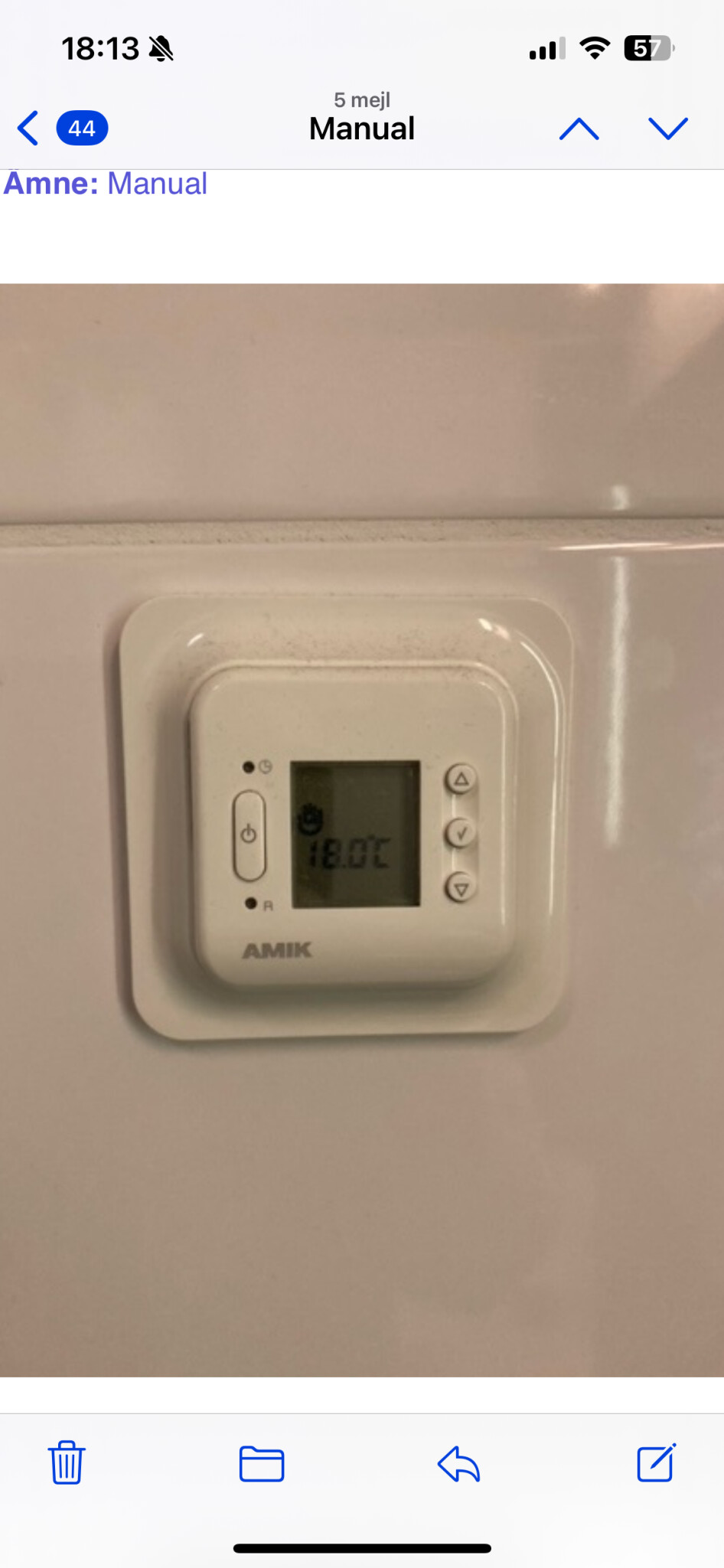 Slå om reglaget på vänster sida eller tryck på den. Dä ska det om det behövs värme röd diod lysa och grön är ok med värmen.C Catharina Karlsson1 skrev:Hej, jag bor i ett radhus sedan ca 6 år tillbaka där det finns golvvärme i badrummet på ovanvåningen. Det finns inga dokument på badrummet som enligt min säljare renoverades 2014 av deras säljare ( jag behöver inga pekpinnar om besiktning eller obefintliga dokument e.d). Jag tror att det är elburen golvvärme men är inte säker. Varken jag eller de som sålde huset till mig har haft golvvärmen igång pga osäkerheten med installationen. Jag känner dock ibland att det skulle vara härligt med uppvärmt golv under vintern. Jag har lyckats leta rätt på en manual på termostaten men vet inte riktigt om jag vågar starta den. Vad hade ni gjort?