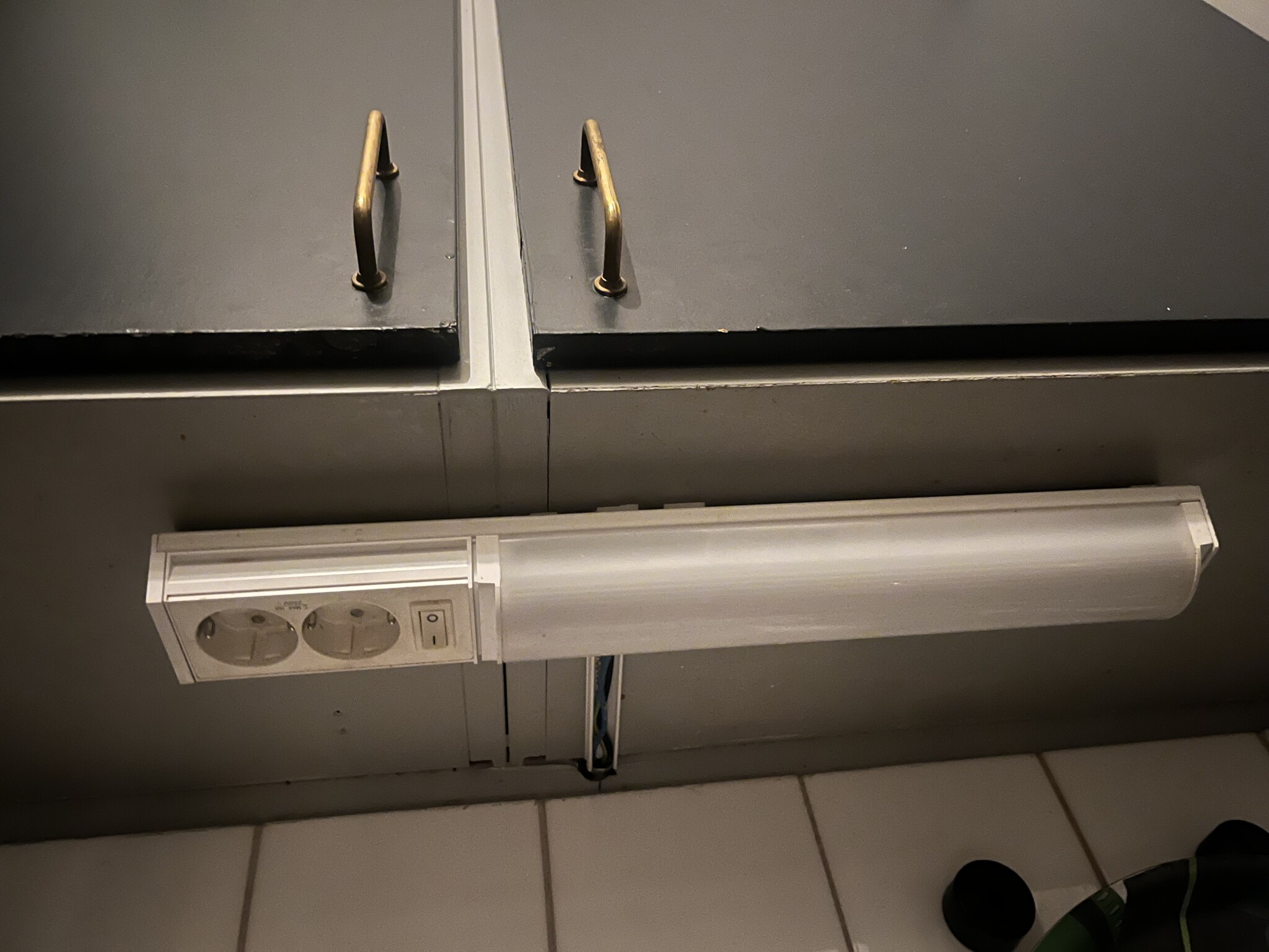 River kök. Har elinstallation på botten av ett av mina väggskåp, sladd går in i väggen. Är detta något jag vågar riva själv och isåfall hur eller bättre lämna till fackman?