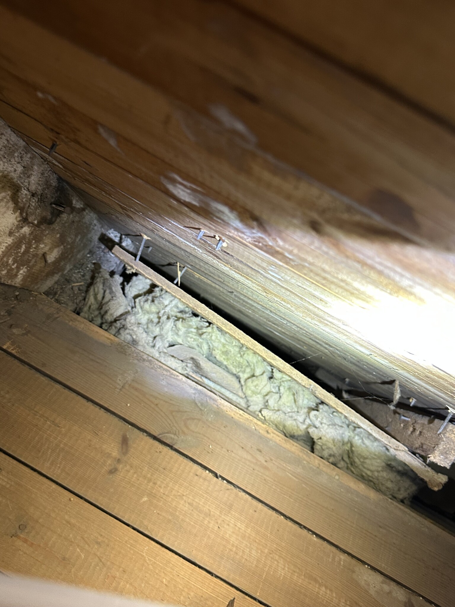 Vill minnas att jag såg spån, men får nog öppna upp en bräda och kolla. Kan ta bilder. Har inte så bra koll på hur det kan vara uppbyggt.