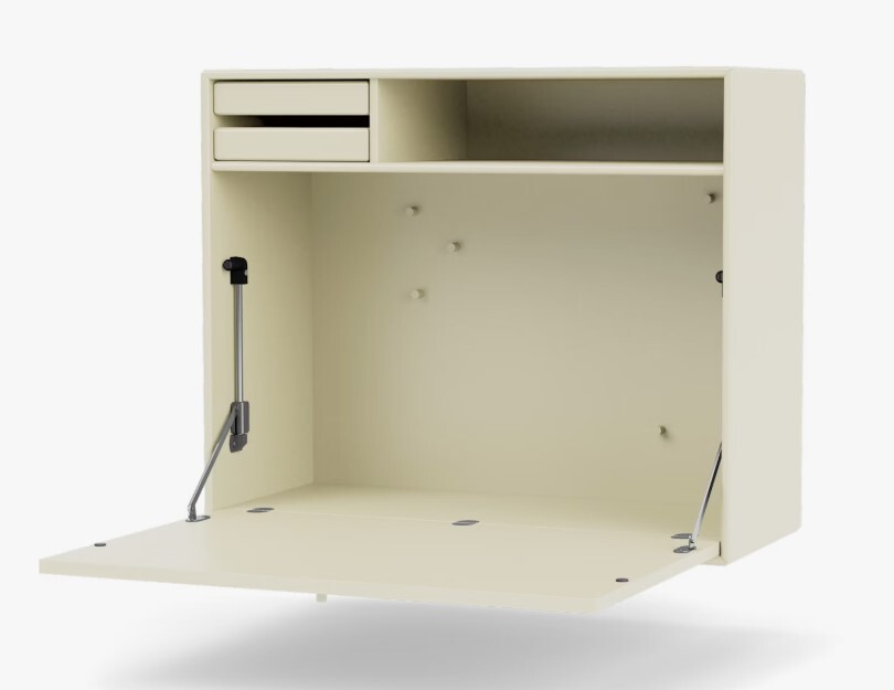 Det jag ser är ett väggmonterat skåp som huserar 2 skärmar och dockstation med ev. utrymme för en bärbar emellan. Antingen så man kan dra ut en skrivbordssektion eller i bästa fall kunna fälla ned själva luckan till en arbetsstation/skrivbordsförlängning.