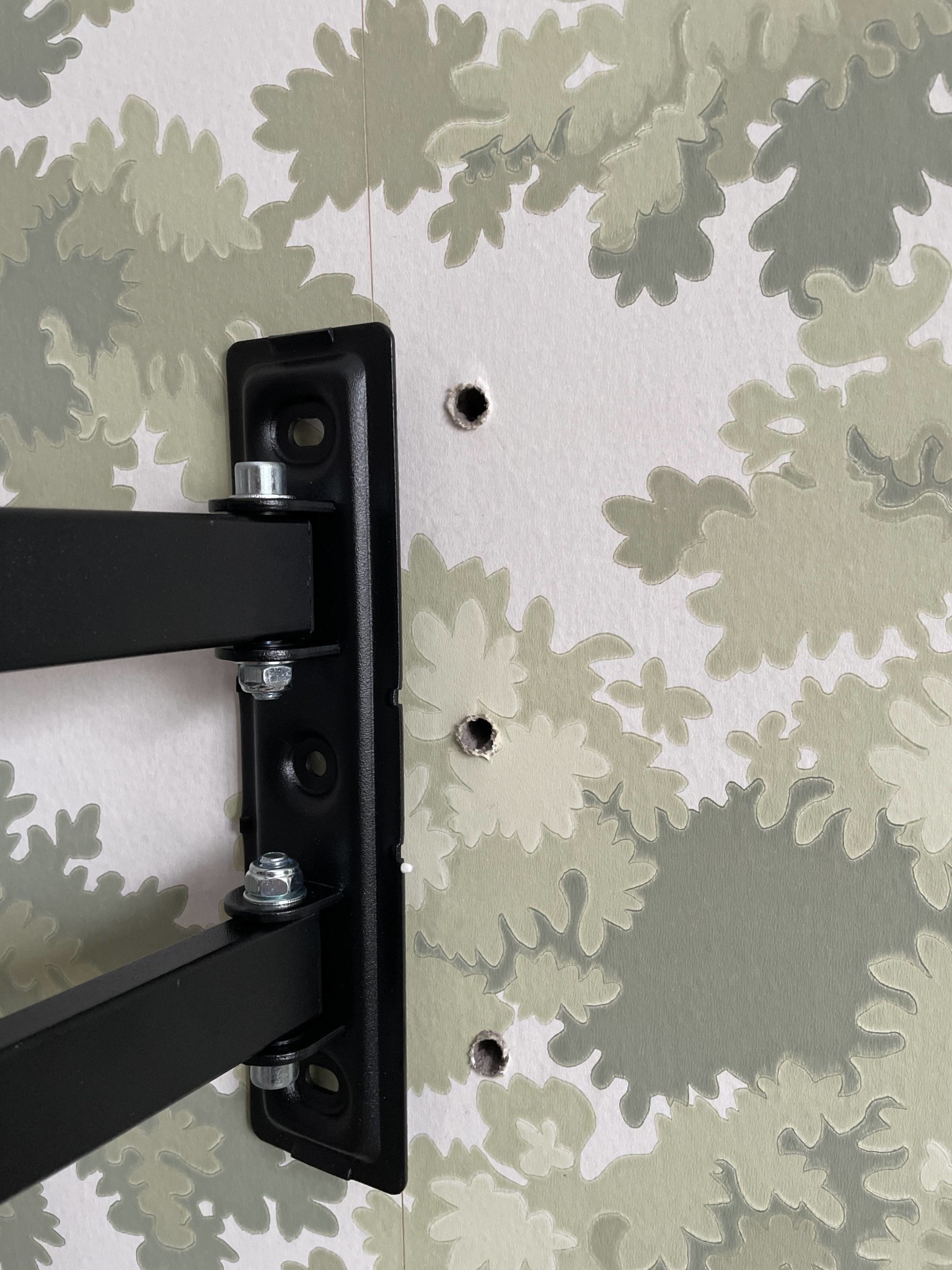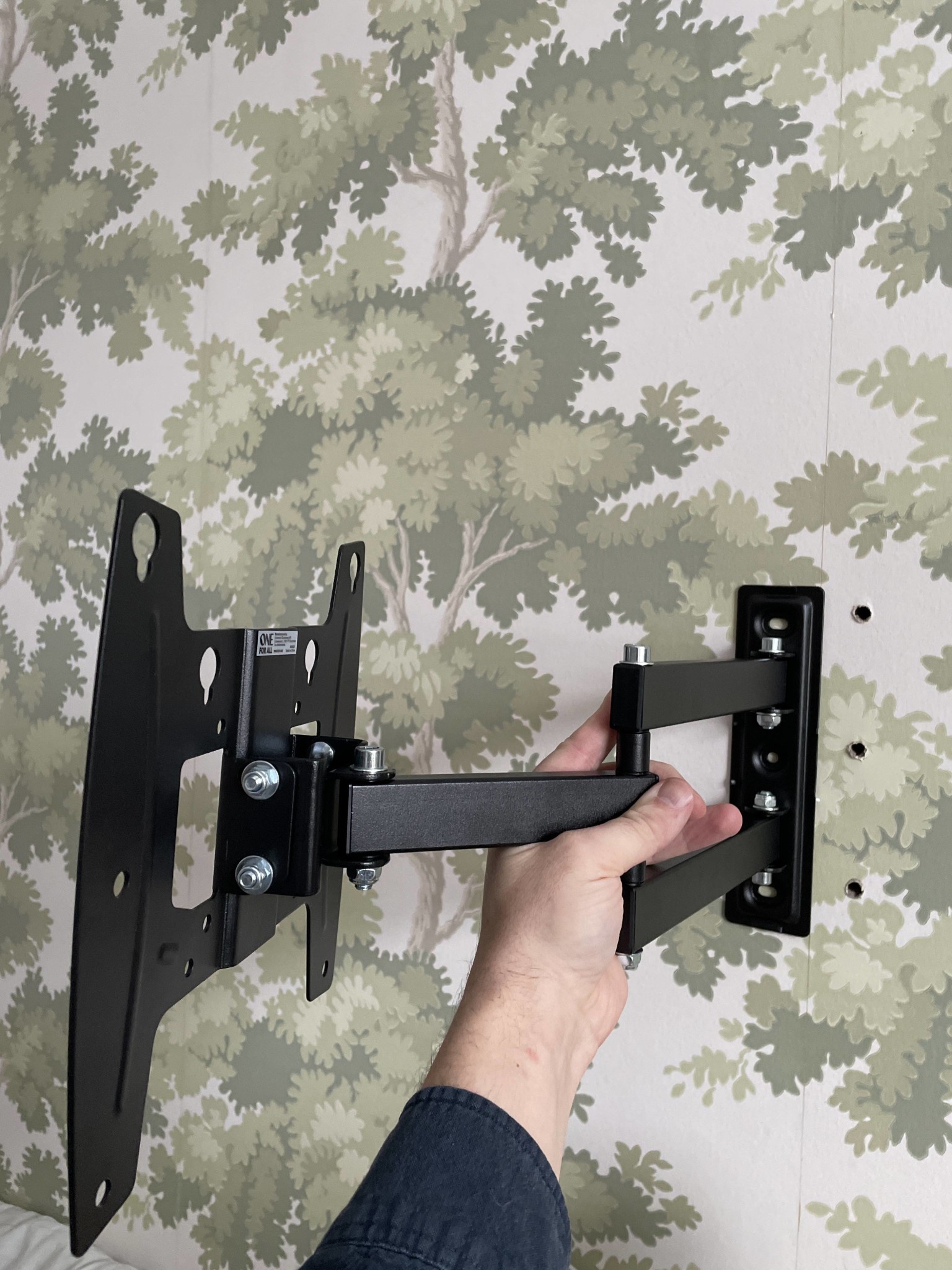 Tonåringen vill ha en TV vid sängen. Eftersom TV står längsmed väggen där TV:n nödvändigtvis måste sitta (enligt både tonåringen och mig själv) så har TV och väggfäste för ändamålet införskaffats. Väggfästet medger att TV: nu kan vinklas ut från väggen 90 grader på en arm. Det bli med andra ord ett visst moment på infästningen även om det är en väldigt lätt liten TV. Och en tonåring som kommer dra TV: ut och in dagligen.