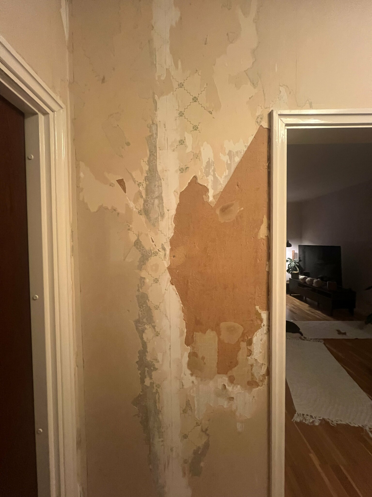 Väggkaos för en amatör! Masonite, tapet och renoveringstapet (?)
