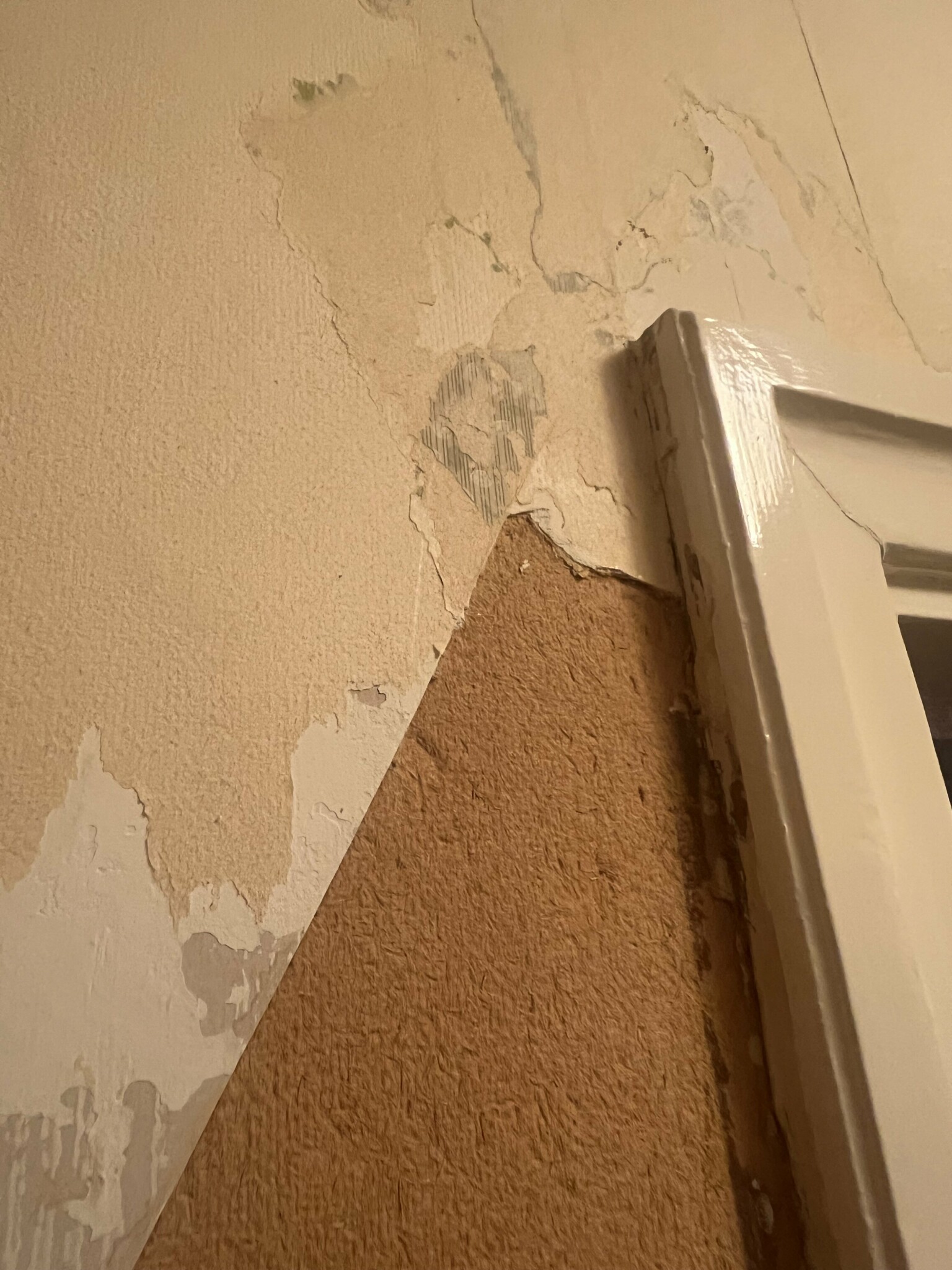 Så här ser det ut på den del av väggen där det är som värst. Resten ser betydligt lättare ut.