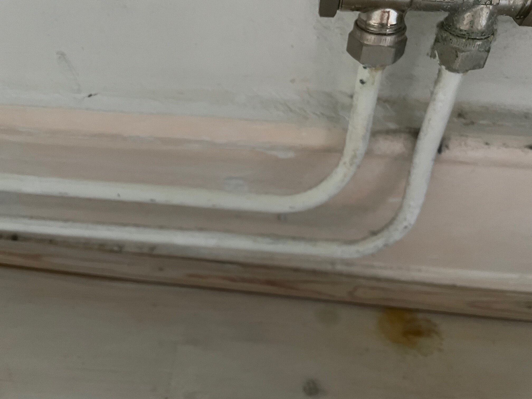 Se bifogade bilder. vad kan detta bero på? Det är på andra våningen av ett sekelskifteshus. Upptäckte det för ngt år sedan, målade över det vitt, men sen tog det ett par månader så tränger det rosa igenom igen. Tar tacksamt emot alla råd.