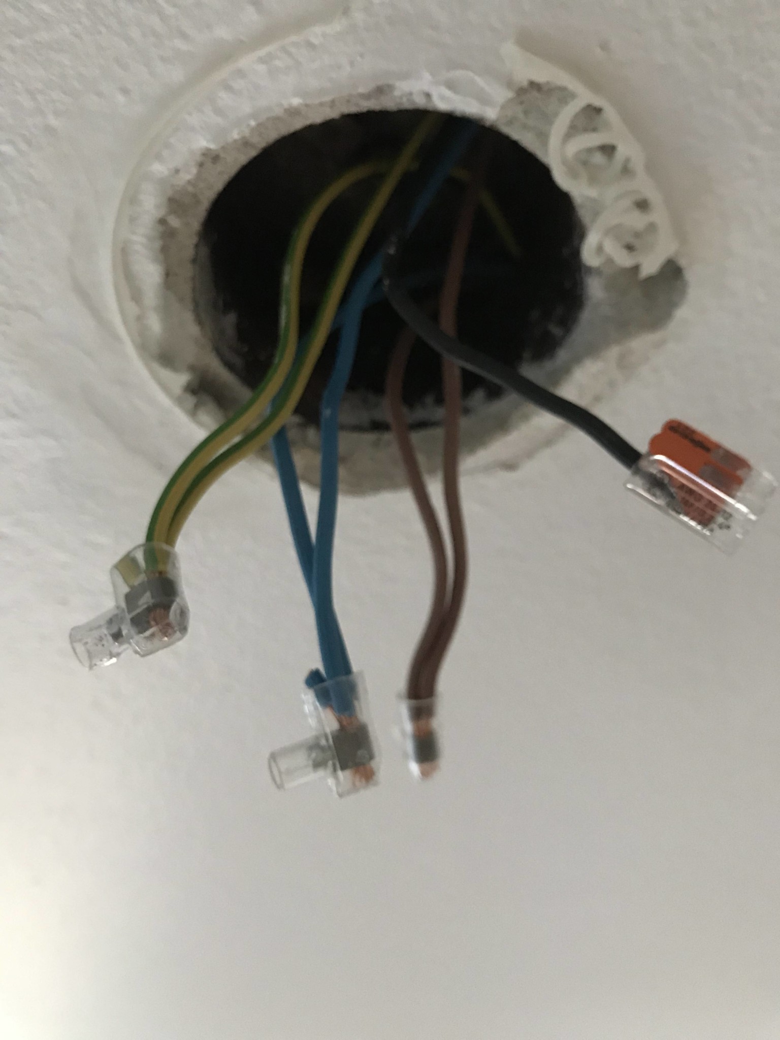 Problemet var att jag hade särat på de bruna kablarna och de borde sitta ihop för att eluttaget ska fungera. Därav hade jag 4 kablar/sladdar och bara 3 skulle användas till lampan.