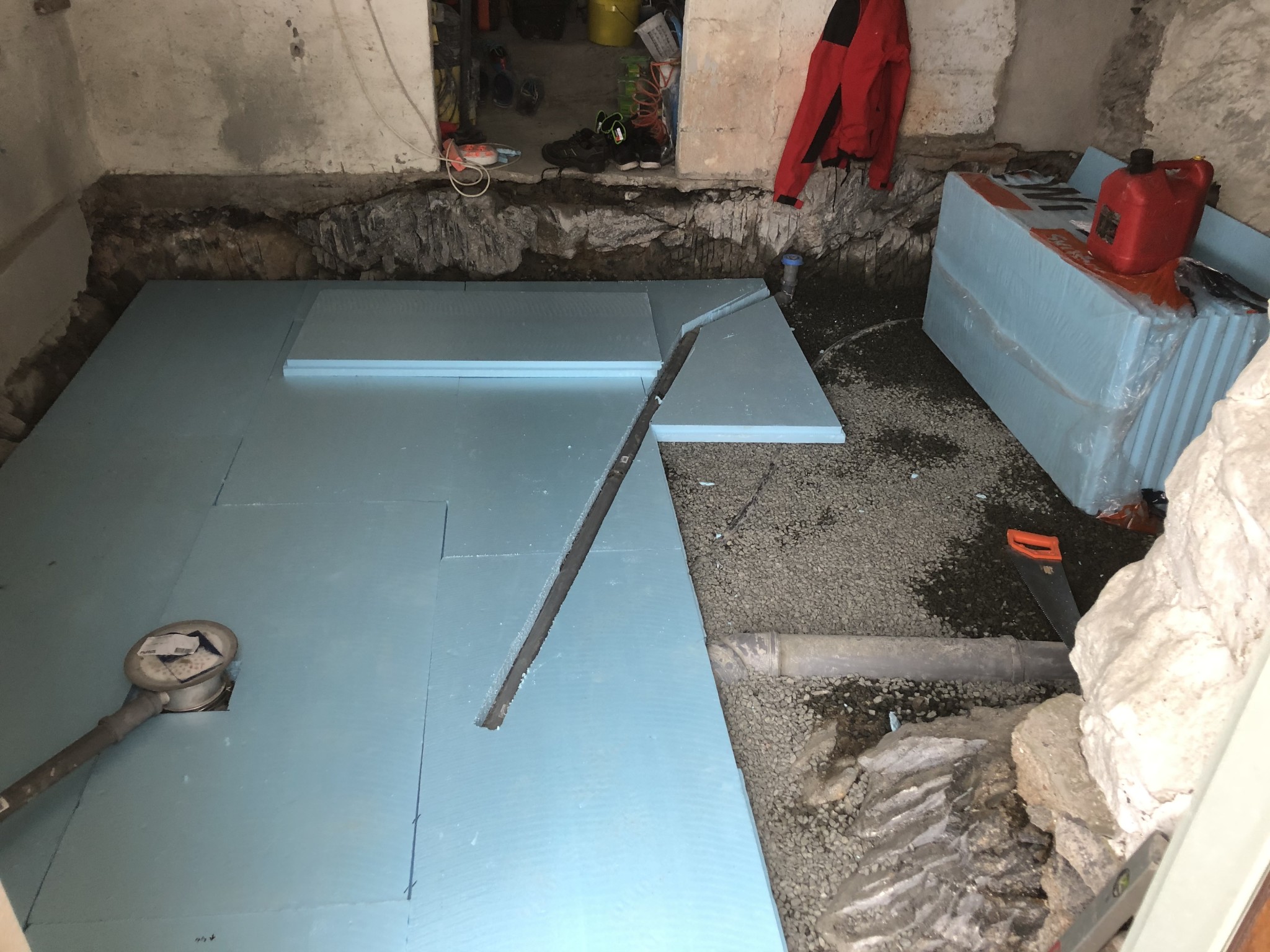 Jag håller på att byta golvet i källaren från "cement" på mark/berg till makadam, markisolering, armerad betong med golvvärme.