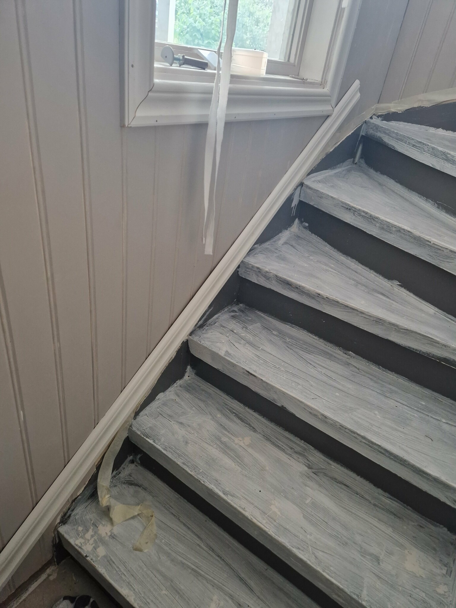 Jag håller på och renoverar omkring trappen där jag bla satt pärlspont.