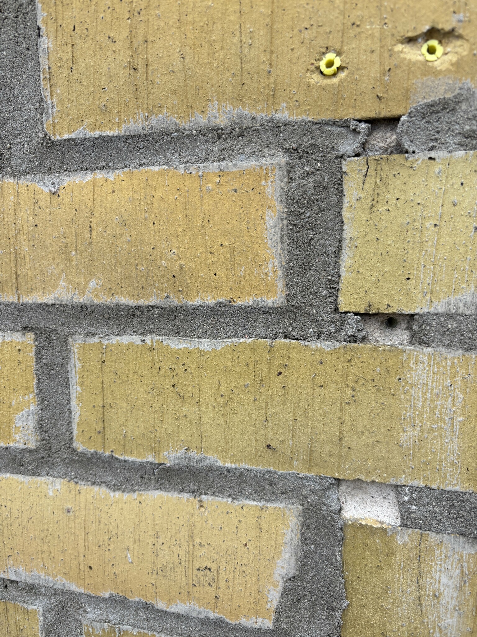 Köpt ett hus med tegelfasad från 57 i södra Skåne. Den tidigare ägaren har fogat om relativt nyligen, men som bilderna visar så är det med diskutabel kvalité. Hur som helst, när vi plockat bort gammal eldragning/belysning på fasaden så ser vi att man inte har fogat om under.
