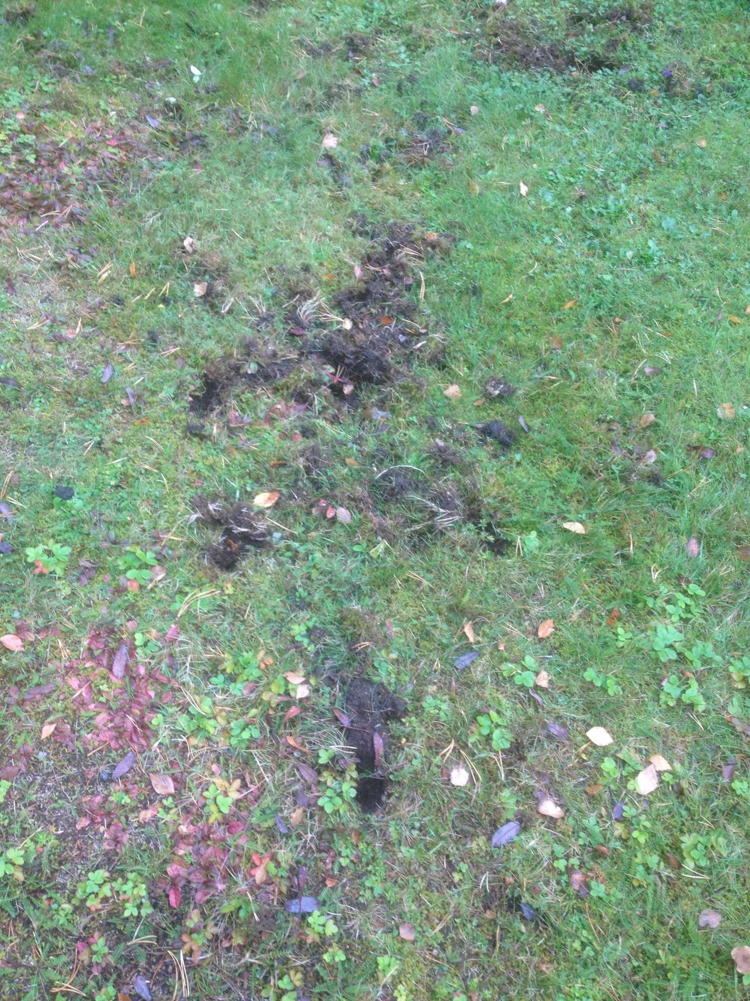 Upptäckte i går att den äldsta delen av vår gräsmatta har fått besök av någon, Det har aldrig under 45 år skett tidigare och har kommit under de senaste två veckorna.