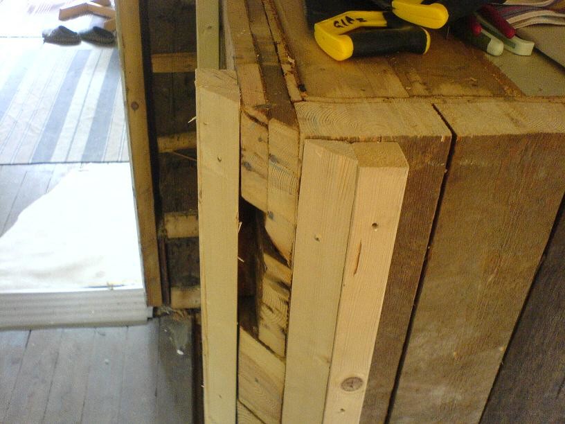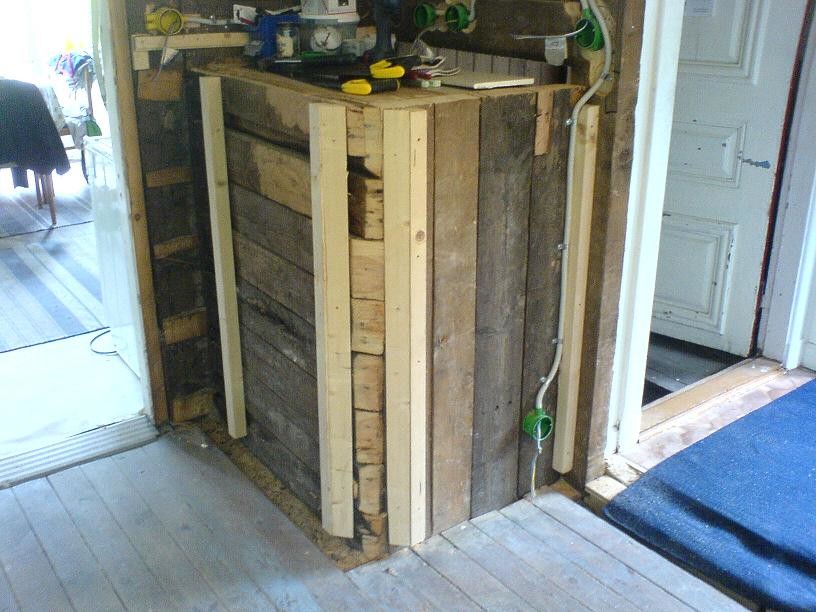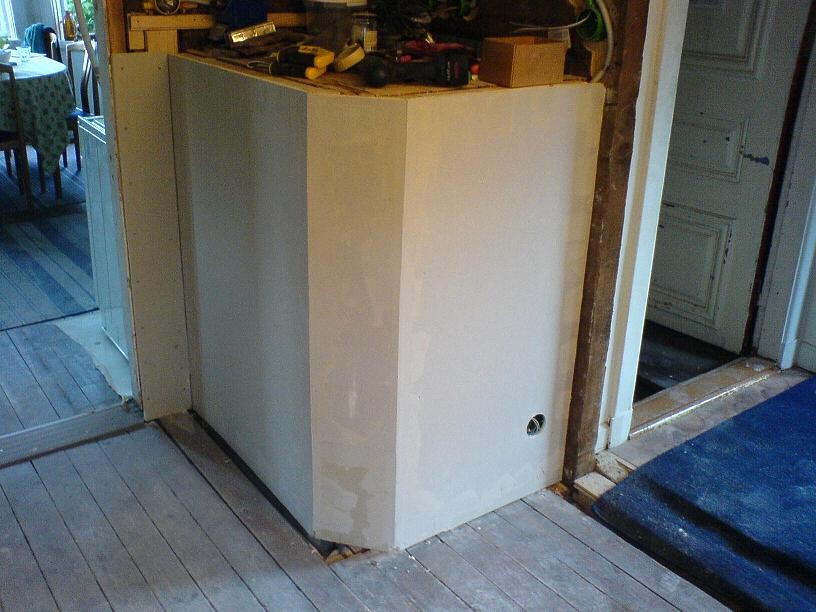 Nu har jag iallafall tagit mod till mig att byggfuska lite; jag är inte lika noga nedanför 90 cm eftersom det kommer att täckas av bänk-skåp.