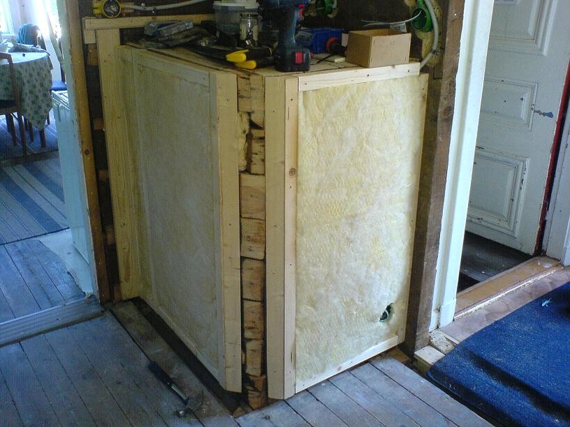 Här har jag precis reglat upp och isolerat lådan till källartrappen.