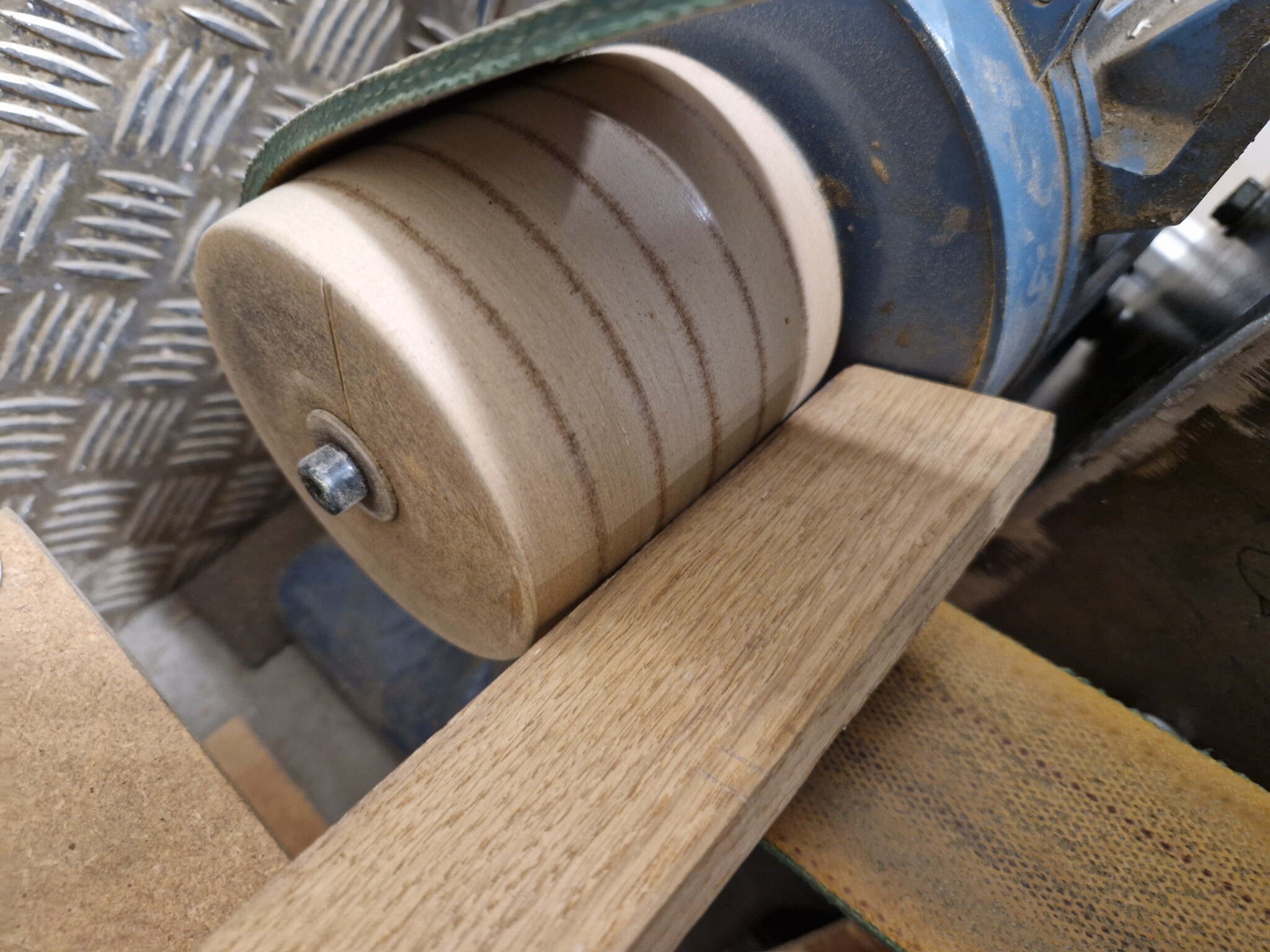 Motorn lyckades jag montera, ett bomberat drivhjul i mdf har den också fått. MEN!! Jag blir inte klok på var jag gjort en stor tankevurpa, flatremmen vägrar hålla sig på hjulen.