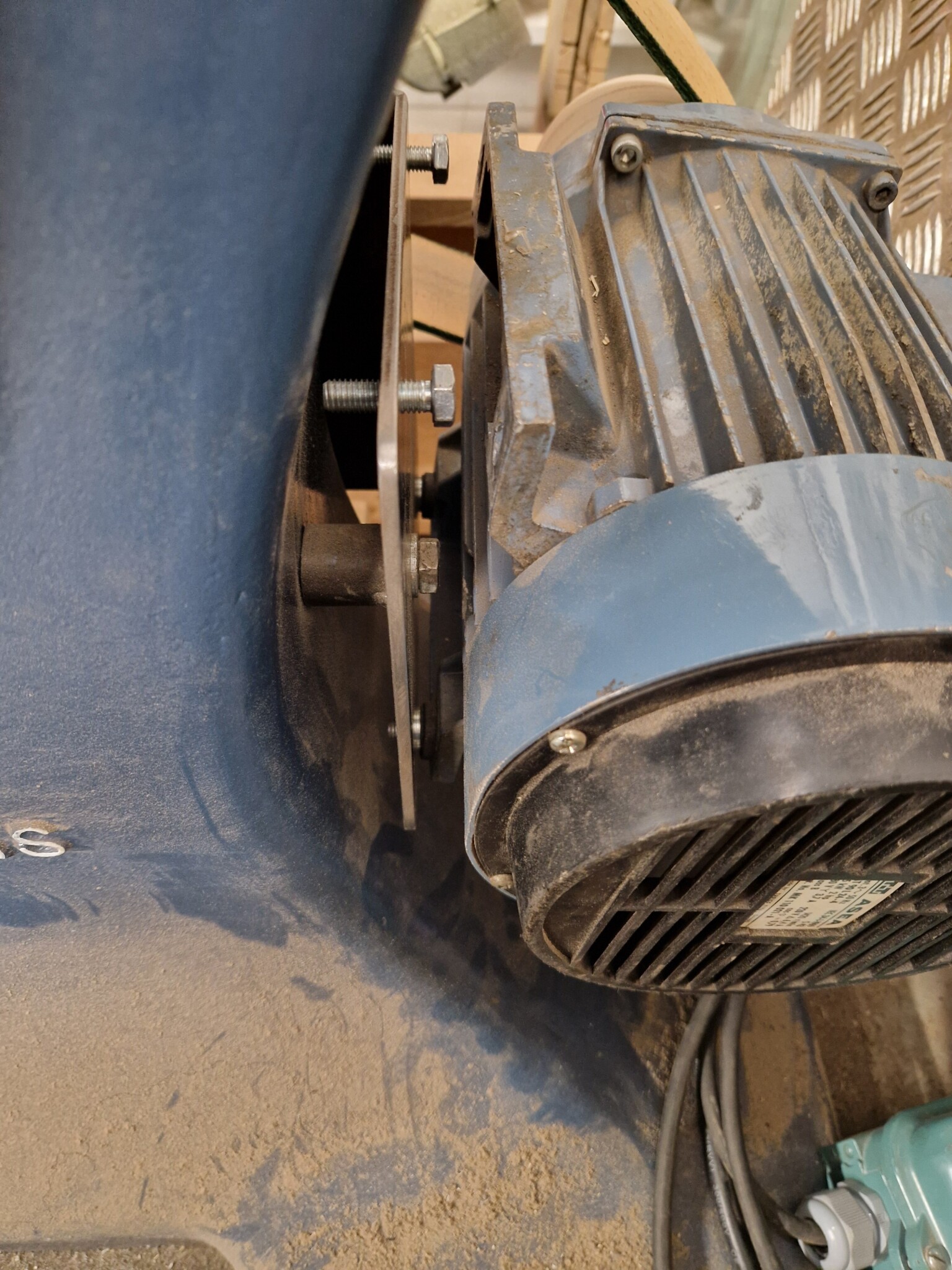 Du behöver också ett stabilare motorfäste. Nu är det ju motorns vikt som spänner remmen och det innebär att när du startar och motorn drar upp varvtalet på mekanismen så minskar remspänningen för en stund då motorn drar i remmen. Just sådana variationer får flatremmar att hoppa av.