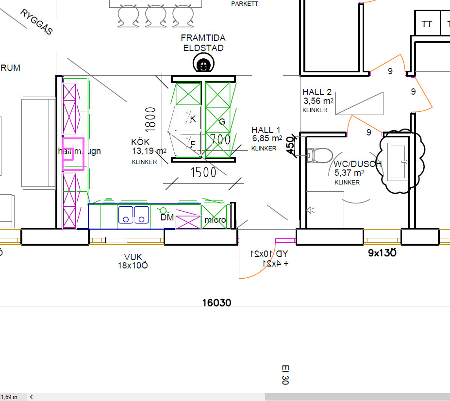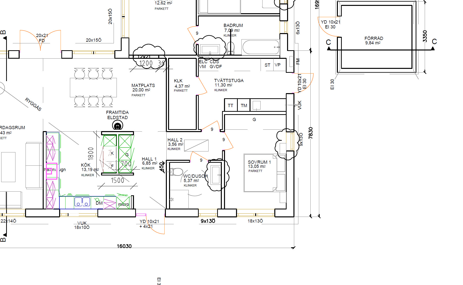 Så här är det beställt. Carport/förråd är till höger. Saken är den att min fru inte vill ha gång mellan carport och ytterdörren, för att man då kommer använda groventren när man går in från den. Jag är tveksam.