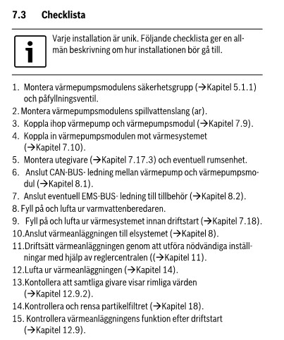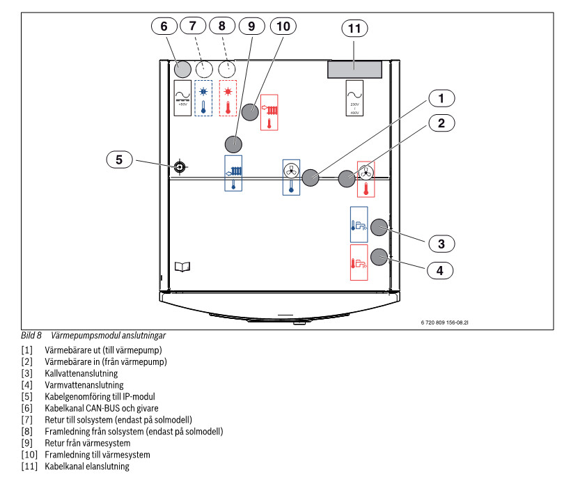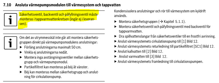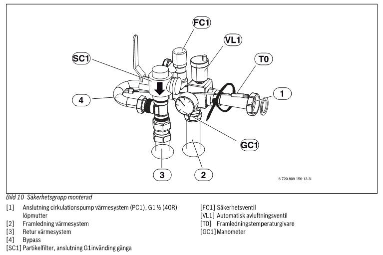 Röret för påfyllning (med påfyllningsventil) bör gå från anslutning 4 till 9 (alternativt 10).
