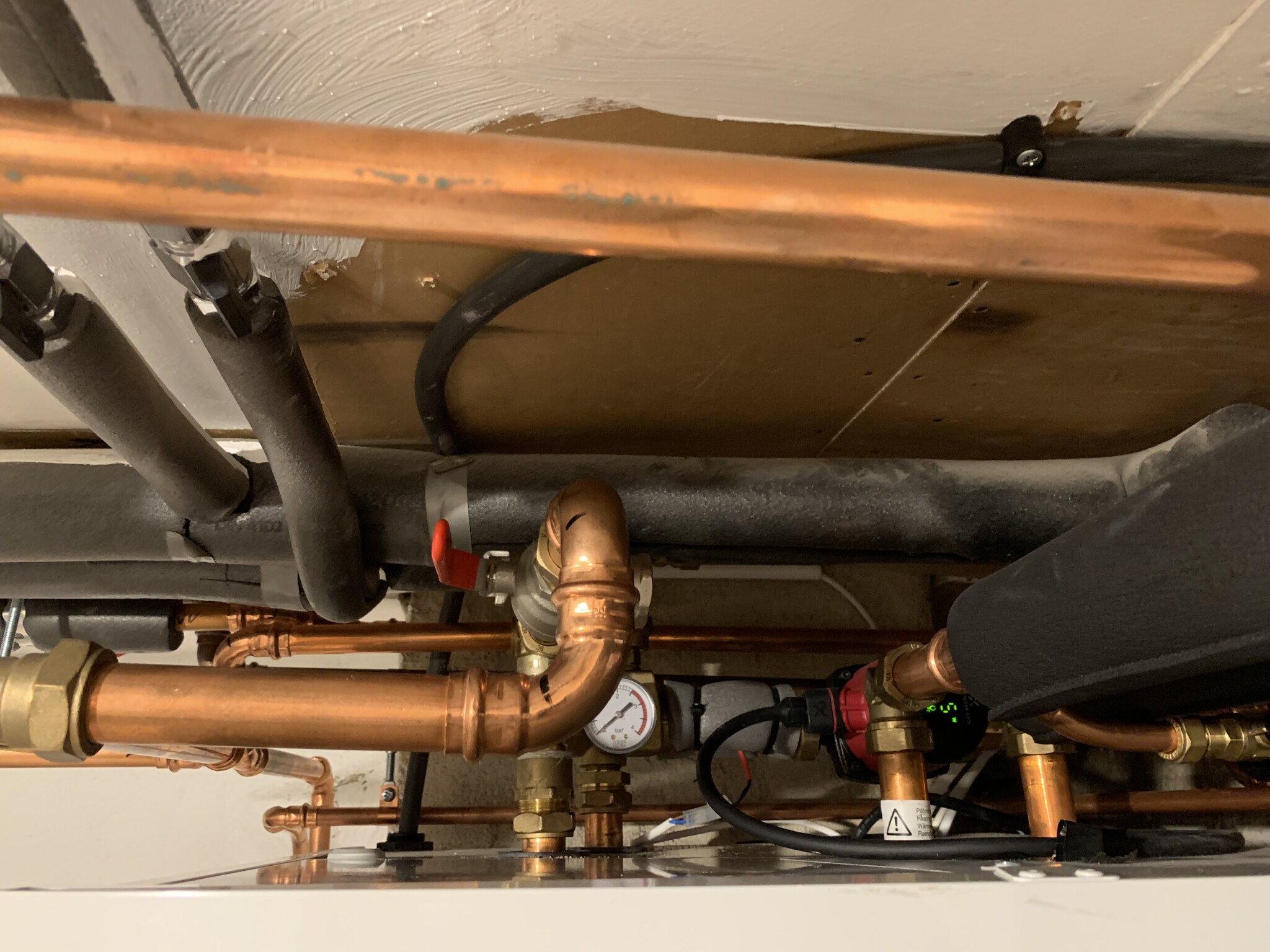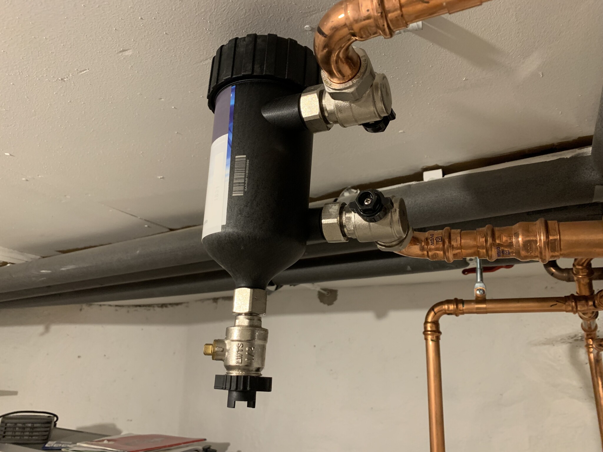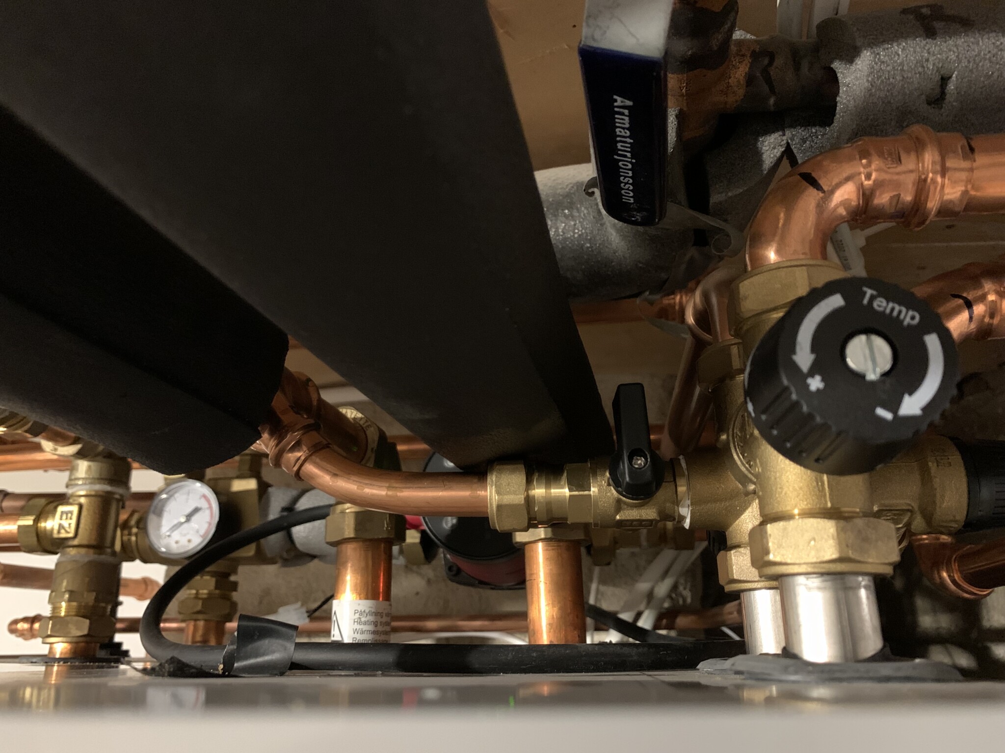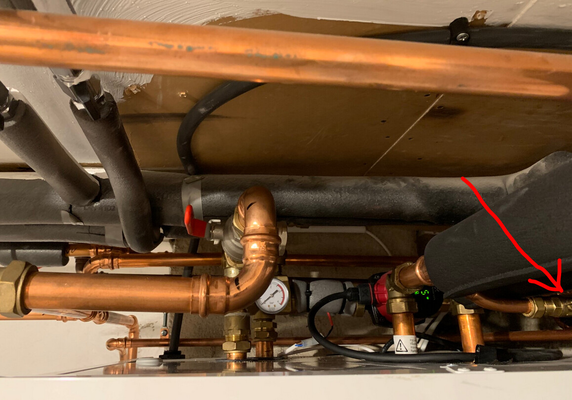 Du bör leta efter en liknande ventil mellan rören till radiatorerna och tappvattnet i närheten av inomhusdelen:A Anders Mäkitalo skrev: