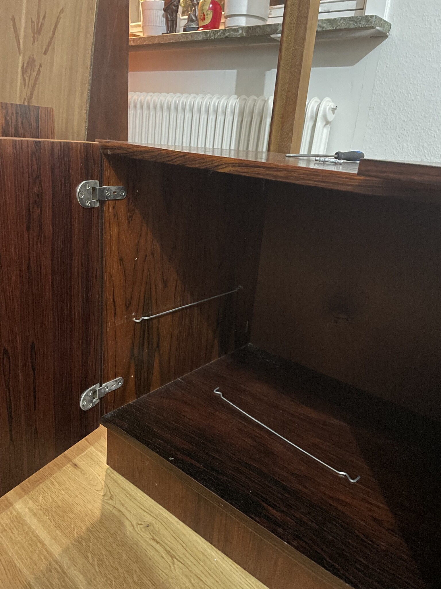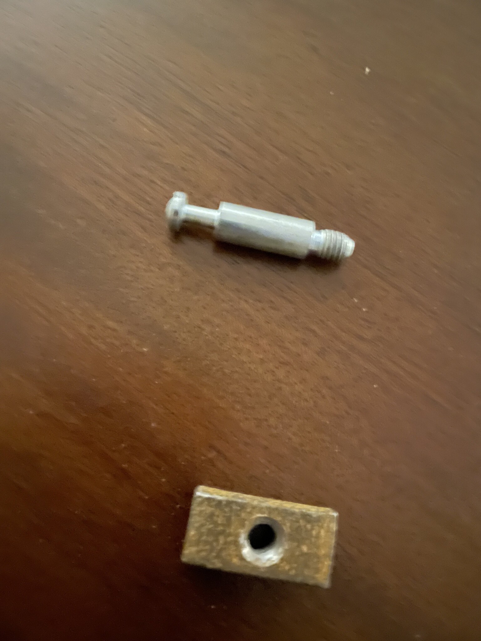 Finns tusentals dylika fästelement för möbler som är tillverkade enbart för möbeltillverkaren och inte tagna ur nå standardsortiment ....Gängan på den synliga långa skruven ser ut som tum så möbeln kanske inte ens är "svensk"......