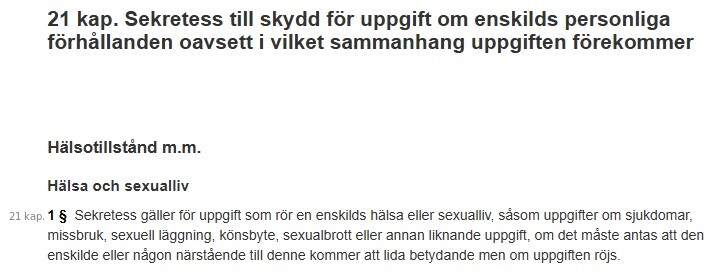 Men man ska vara medveten om att det finns mycket stark sekretess och sekretesskydd till förmån för individen i lagen. Man har valt detta för att skydda individen och jag tror ändå att de flesta tycker det är bra med vårdsekretess och att individen skyddas. Ibland blir det fel, och då kan det bli väldigt fel