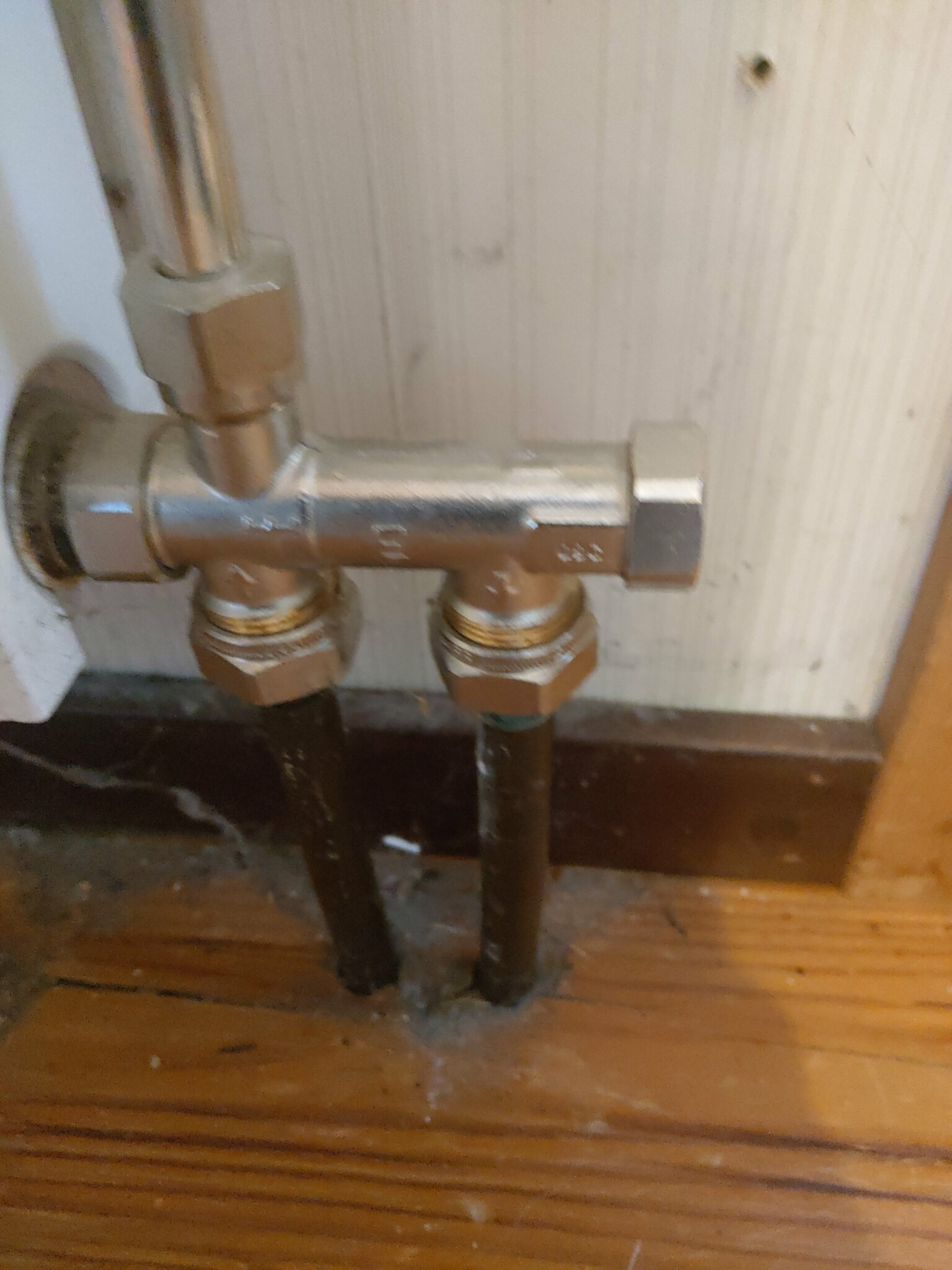 Det här är de koppel jag har på nya radiatorerna. Jag har försökt att justera nere i fördelaren utan någon förändring. VAd jag förstår är det bara flödet genom radiatorn man minskar genom att skruva in "kranen".Demmpa skrev: