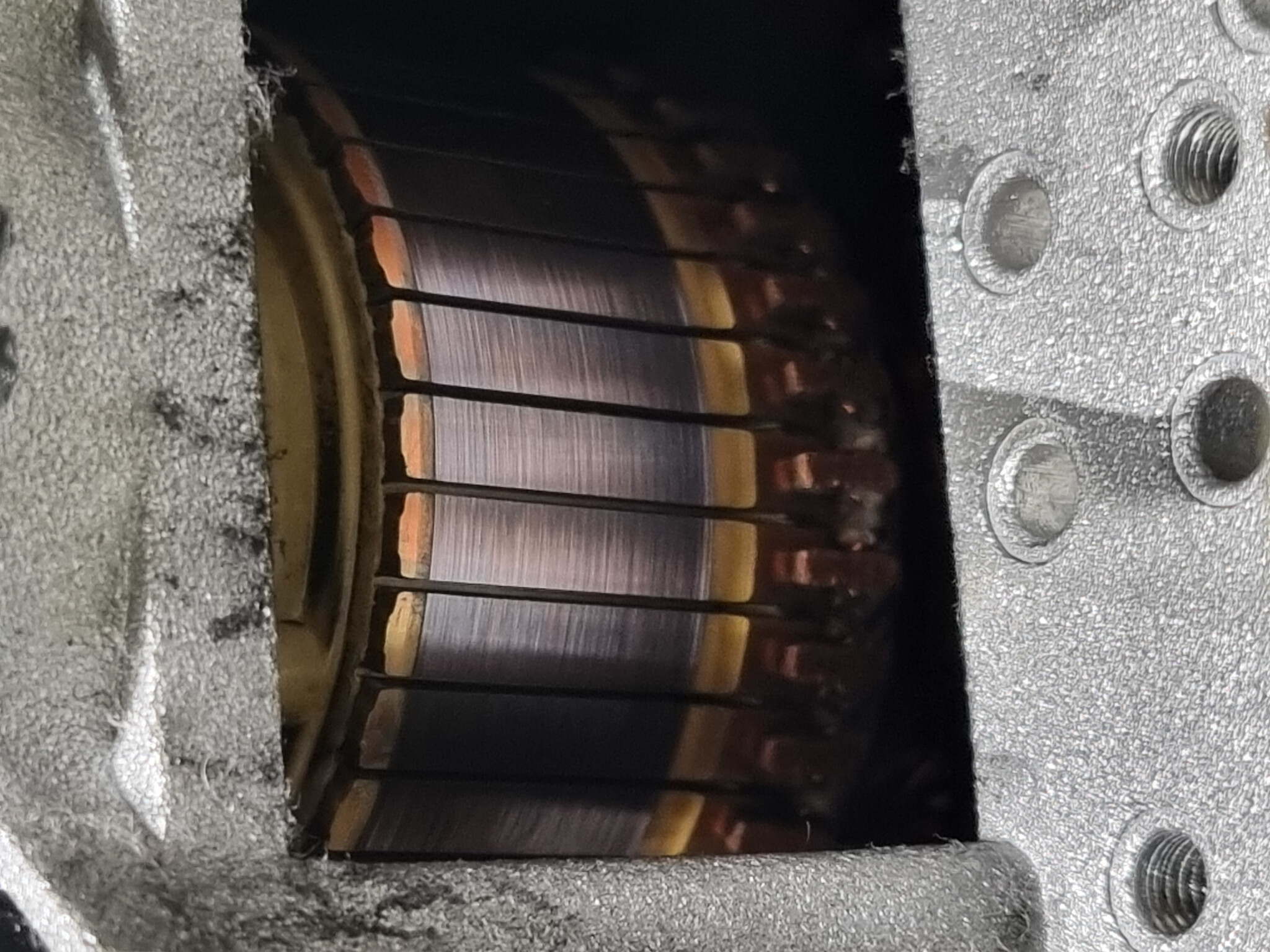 Kollektorn såg likvärdig ut runt om, tack och lov.... så jag skruvade tillbaks kolen. Och så var det lite fippligt att skruva i den vänstra iom slangen ner mot pumpen... så råkar jag så klart tappa en skruv... och den går tydligen igenom ett mindre hål i bottenplåten och landar under maskinen... haha, vad är oddsen? 😄electroluxaren skrev: