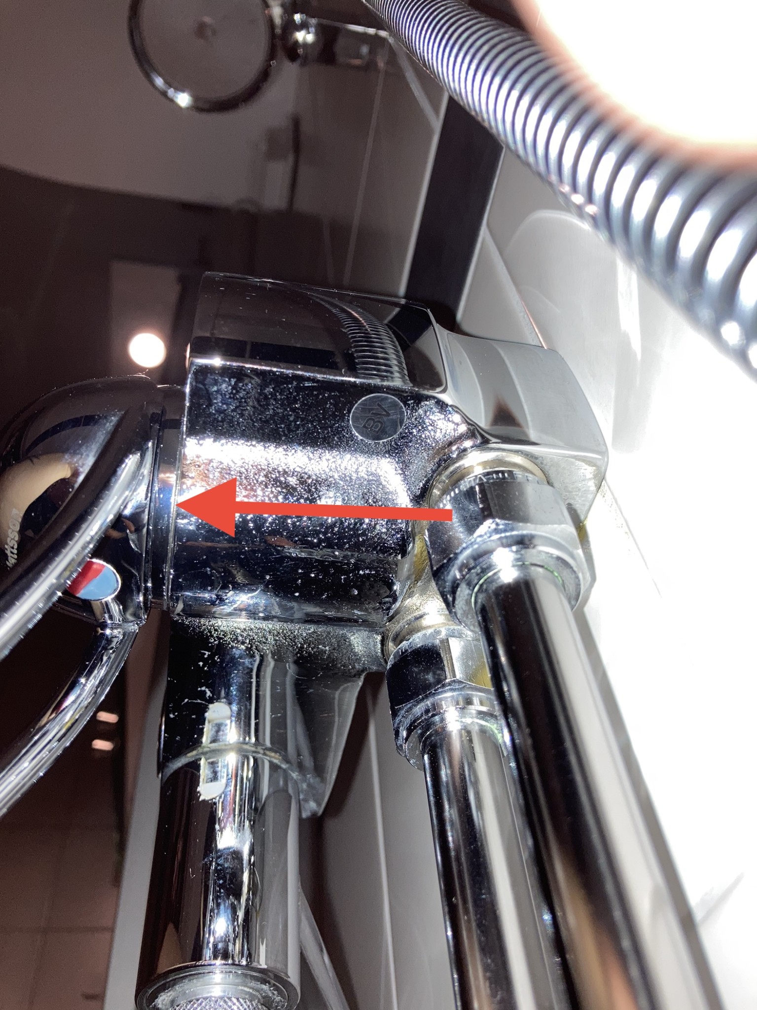 Har en blandare i duschen som börjat droppa bakom vredet (den där spaken som man vrider på/av vattnet och justerar för kallt eller varmt) (se bild med pil var det droppar). Upptäckte en liten liten pöl precis under blandaren på golvet när jag varit borta i en vecka och såg då droppbildning bakom vredet på den där lilla ringen bakom vredet som man kan snurra på.