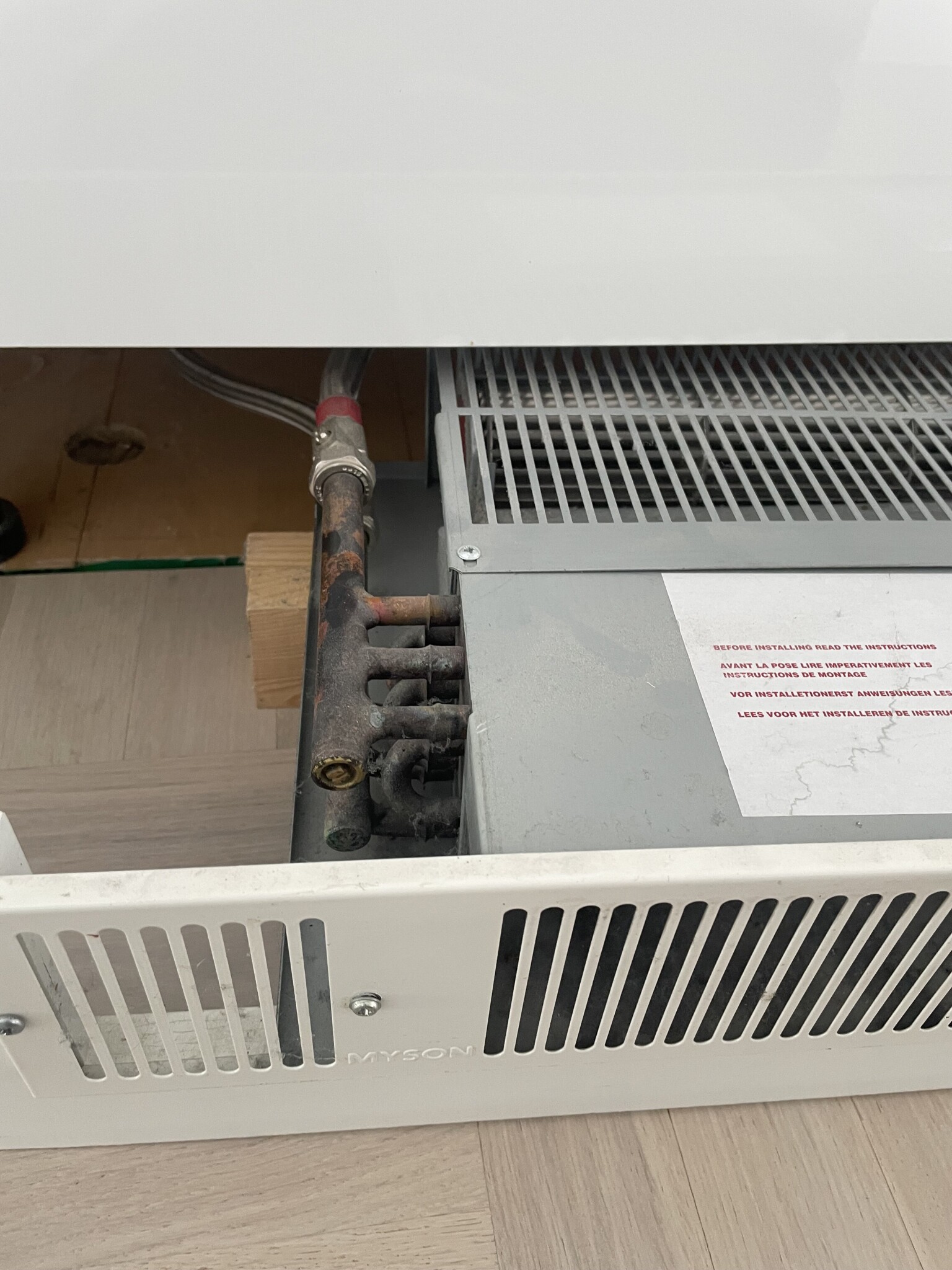 Termostaten har jag även provat att sätta in en ny för att se om det hjälpte, men nej. . Själva rören som går in i konvektorn mäter jag till ca 31 och 33 grader utvändigt. Enl. bruksanvisning behöver inkommande vatten vara minst 46 grader, helst 60 grader för att det skall fungera. Jag vet inte om inkommande vattnet är för kallt? Svårt att säga hur mycket vattnet är i temperatur när rören är ca 32 grader utvändigt. Har även provat, på Kickspace rekomendation, att sänka termostaterna på elementen som finns i huset för att göra utrymme för tryck till Kickspace:n. Detta gav ingen effekt för Kickspacen. Det finns heller inga tekniker från Kickspace eller reservdelar att tillgå. Dom tror att det är något med vattnet in, då den går igång i fläkt-läget. Rrekomenderade att ta hit VVS entreprenad och om inte de kan lösa det beöver jag köpa en ny enhet.
