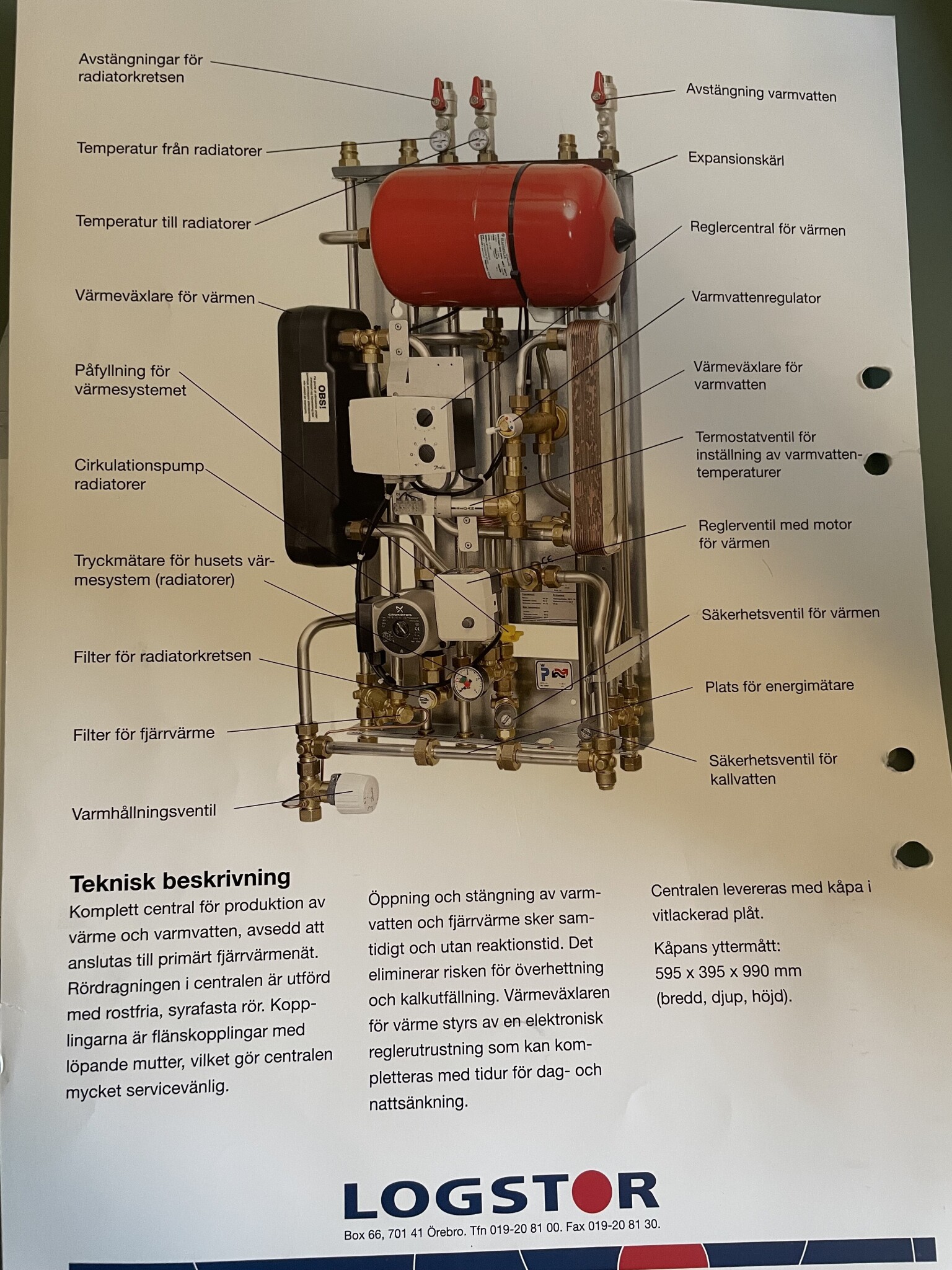 Jag håller med om att 46 grader är hög temperatur. De mätare jag hittar på vattnet visar strax mellan 30-40 grader till värmecentralen. Jag mäter även kopparören som går till andra radiatorer till runt denna temperaturen. Huset är byggt 1964, stenhus.
