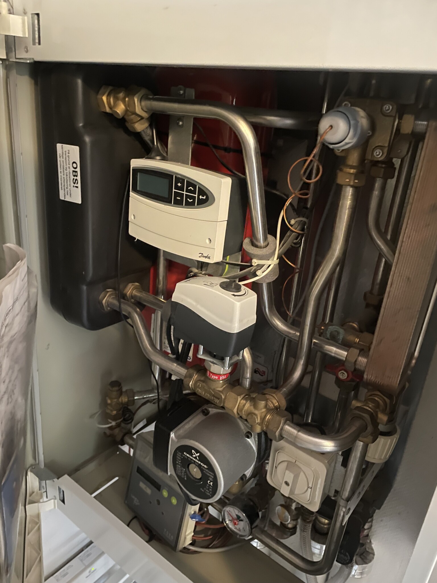 Om jag återgår till själva grundproblemet - att fläkten behöver 46 gradit vatten för att gå igång (enl deras manual). Det går ju knappast ut så varmt till elementen om inkommande vatten är 49?