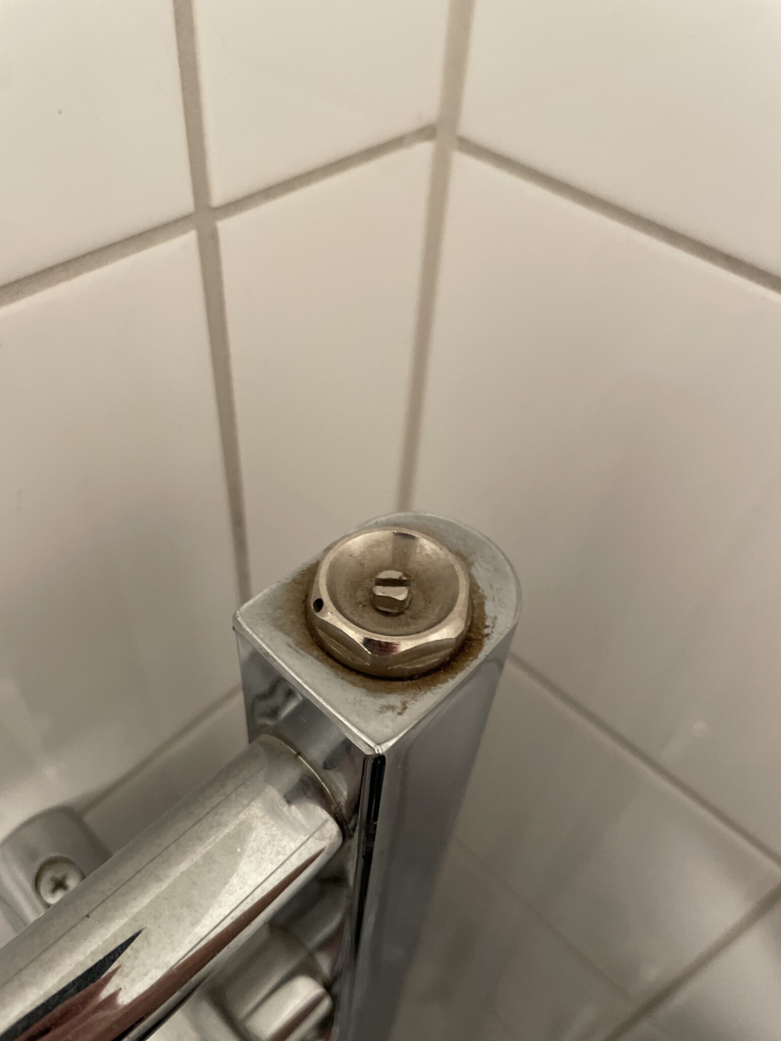 När jag skruvade lös denna se bild: så började det sakta rinna ut vatten. Såg ut att även rinna ut lite olja. Jag hörde från en YouTube video jag hittade att man skulle rensa handdukstorken på vatten och sedan se till att det flödar in nytt rent vatten in i handdukstorken.