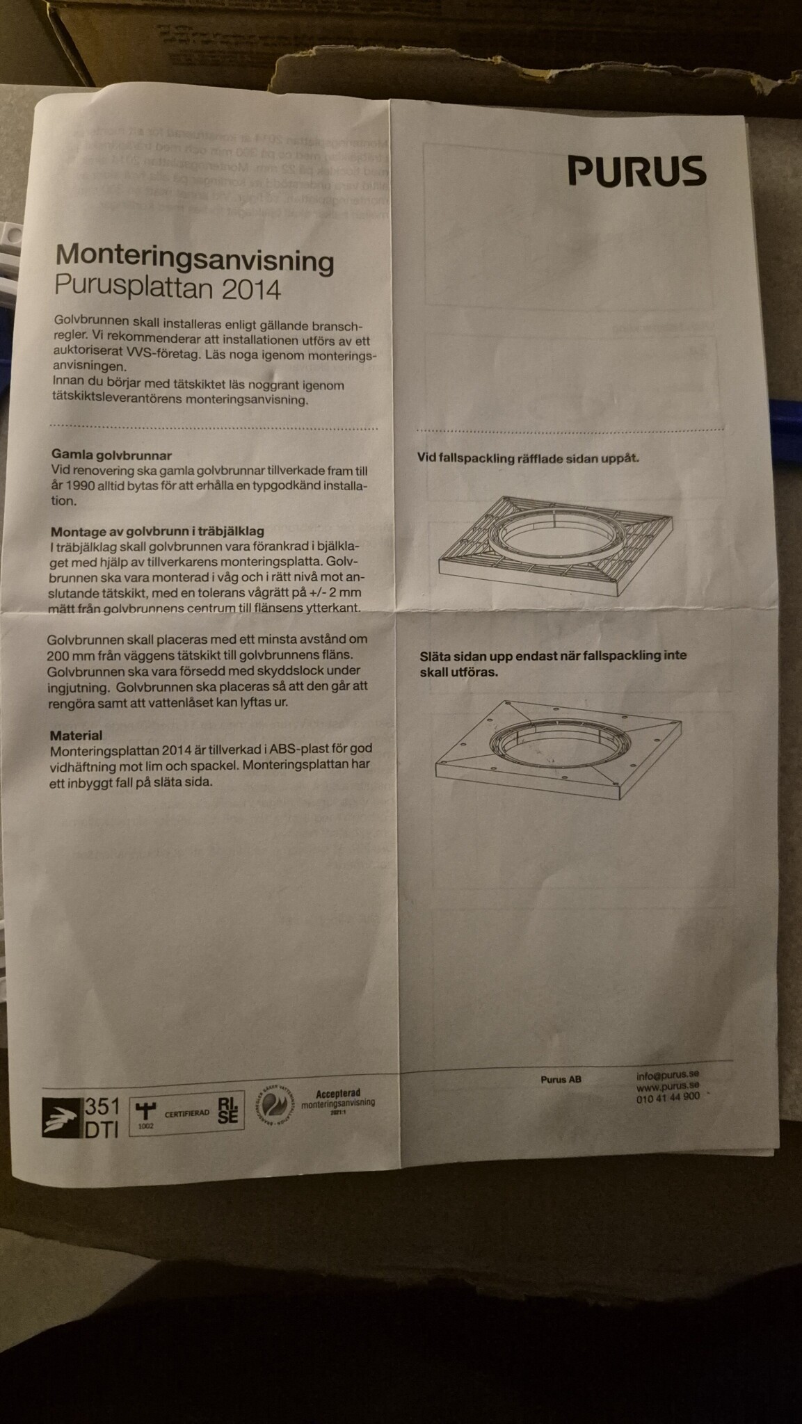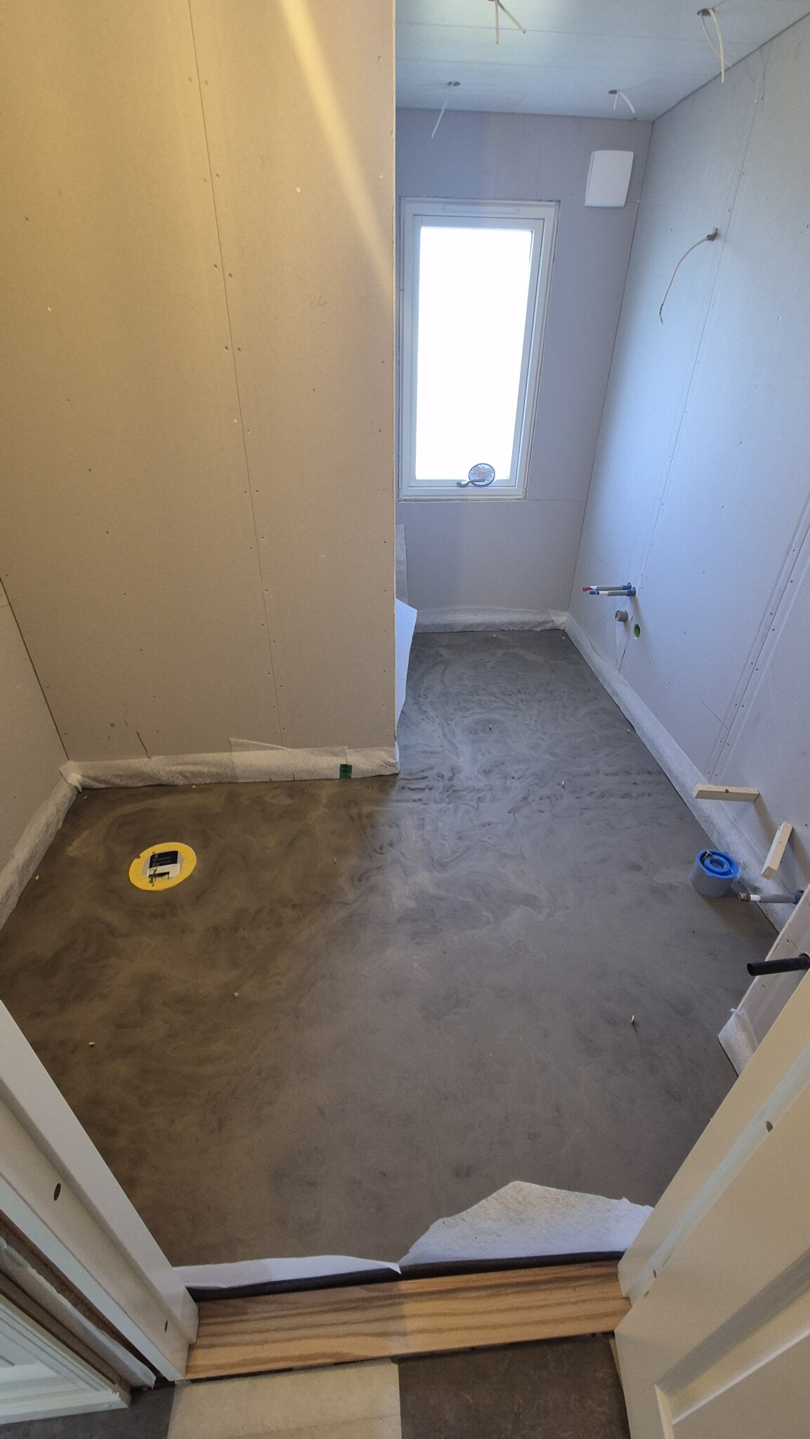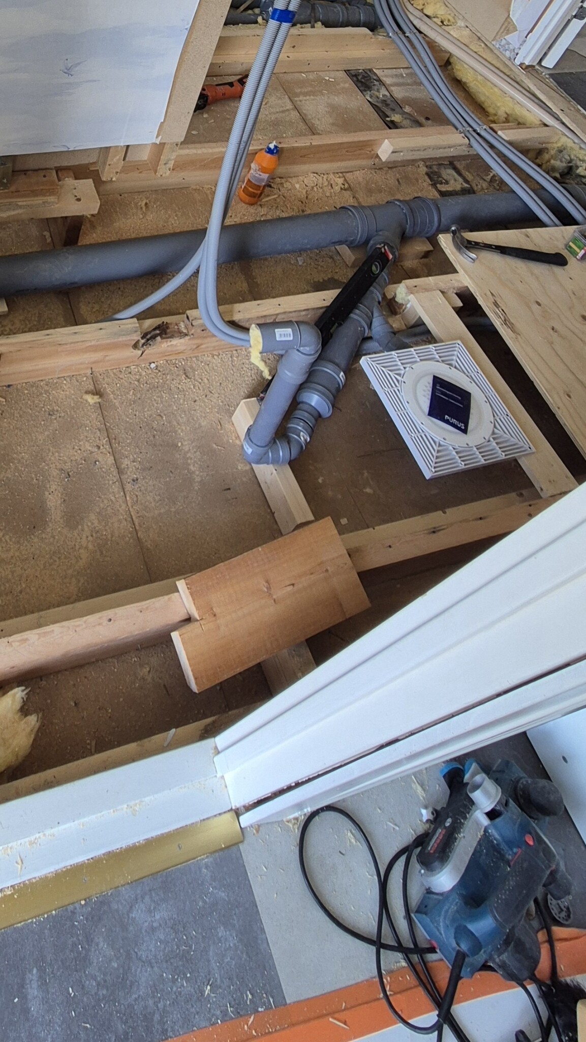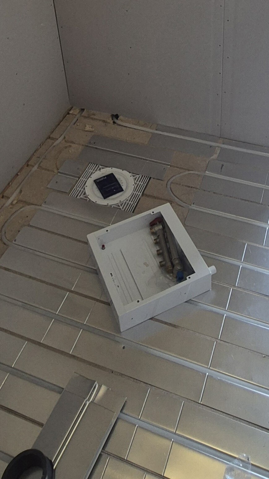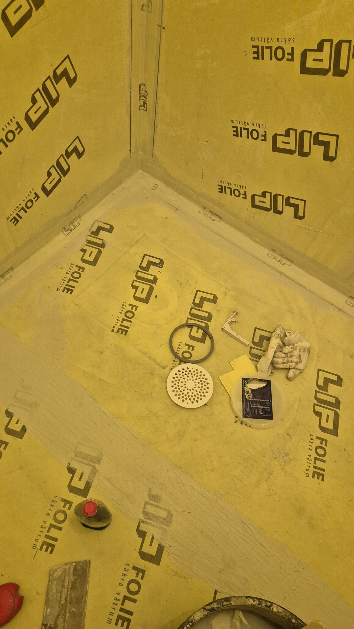Vi är i en pågående badrumsrenovering via försäkring. Blir lite fundersam över denna del som ingen verkar bry sig om. Är en Purus 2014 som jag förstår det. Golvet ska klinkras och tätskiktet är gjort. Frågar jag chat gpt borde den delen redan suttit där ? Är det något dom glömt sätta dit?