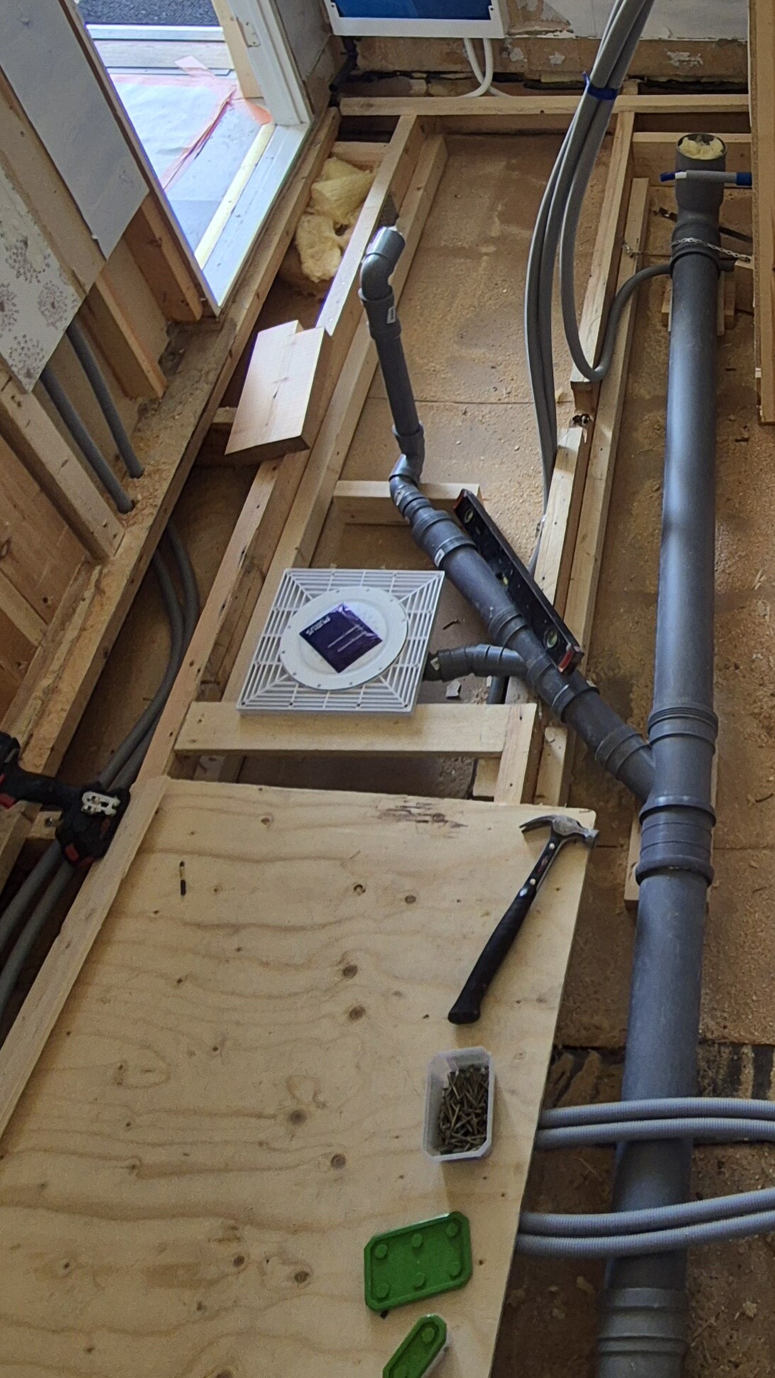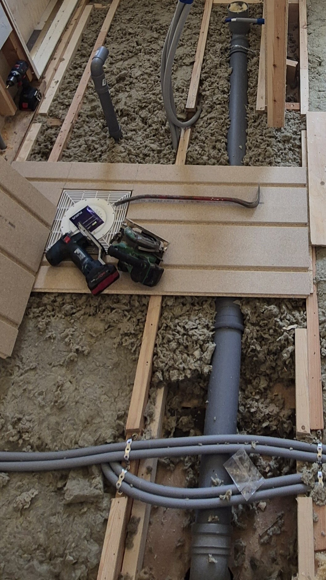 Tycker bara det ser ut som en tunn planka på ena sidan men det kan ju ha tillkommit mer innan de stängt golvet fast det är svårt och se hur de fått dit något vettigt när rören är dragna som de är.S0MMER skrev: