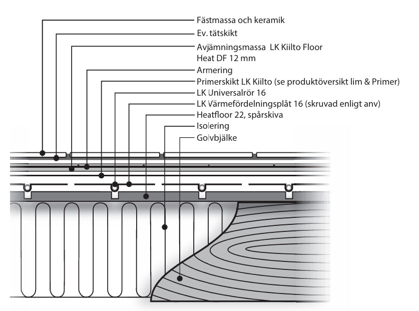 Jag använde också spårade i mitt abdrum. Ett sätt att få ner bygghöjden. Jag ville inte att badrumsgolvet skulle ha ett för stort steg upp från hall. Och då var spårat ett alternativ att minska bygghöjden ut till dörröppning. Men det gäller ju att följa anvisningar. LK har en rätt tydlig anvisning, med allt från hur tätt plåtarna skall skruvas, tjocklek på spackel och krav på primning över plåtar mm. Följer mand et så tycker jag det är aldeles utmärkt, och minskade sapckellagret i hela badrummet med ca 16mm. Ditt fall är ju kanon om det finns plats. Men har du 16mm rör, så behöver du flytspackla 28mm intill brunn plus fall. Blir snabbt ett stort steg vid dörr. Faktum är att din egen bild ser ut att det är rätt tunnt mellan rör överkant och brunn. Men du kanske satte en förhöjning efter bilden?M mabe542 skrev: