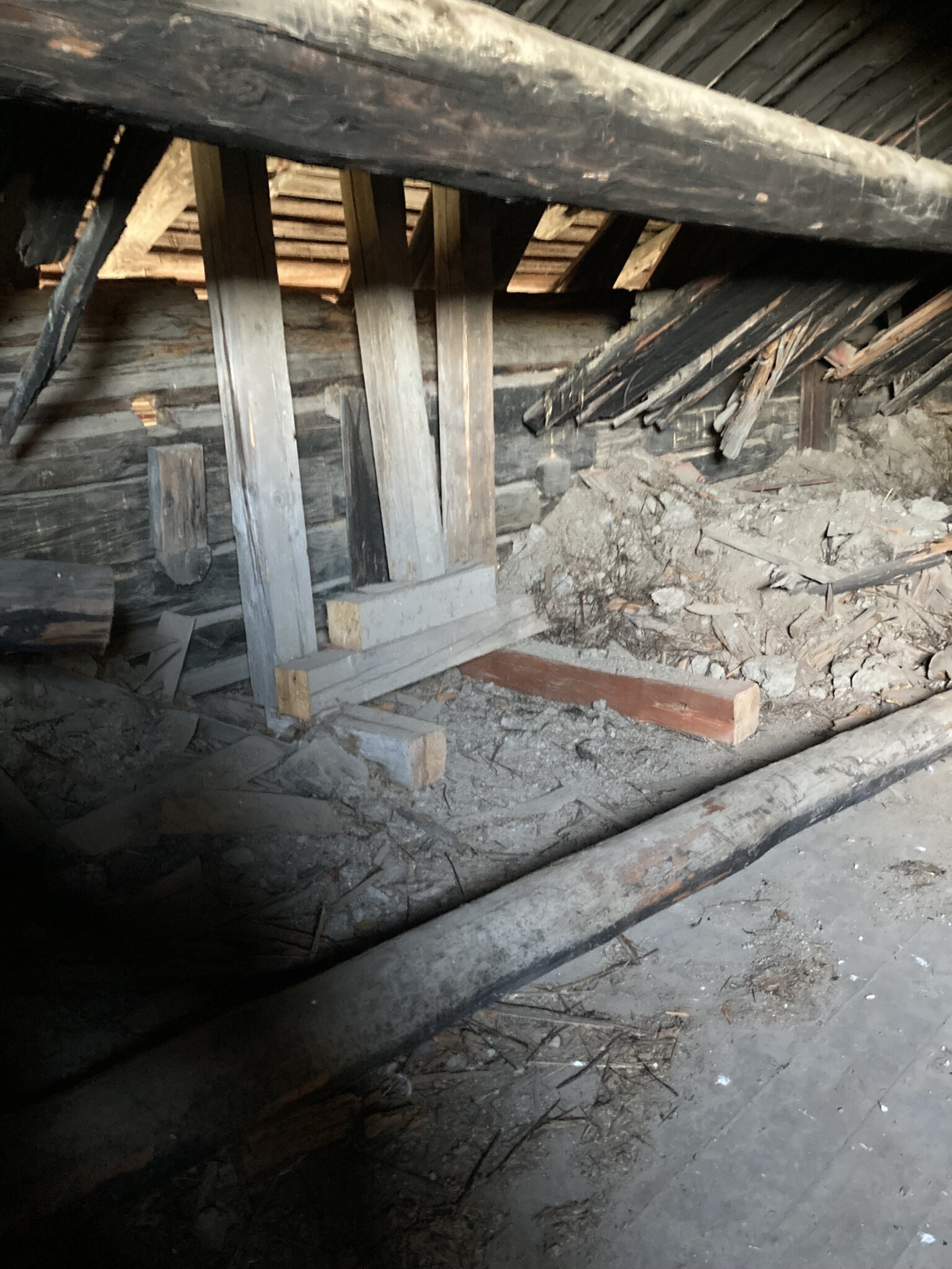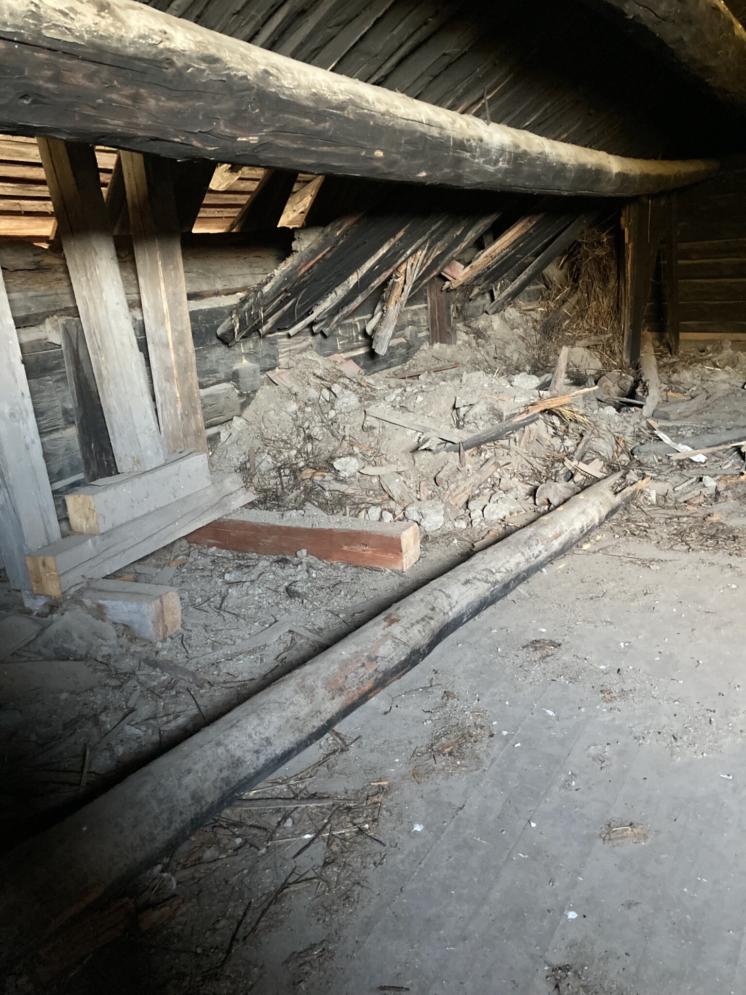 Varför har mellantaket rasat i en gammal timmerlada?